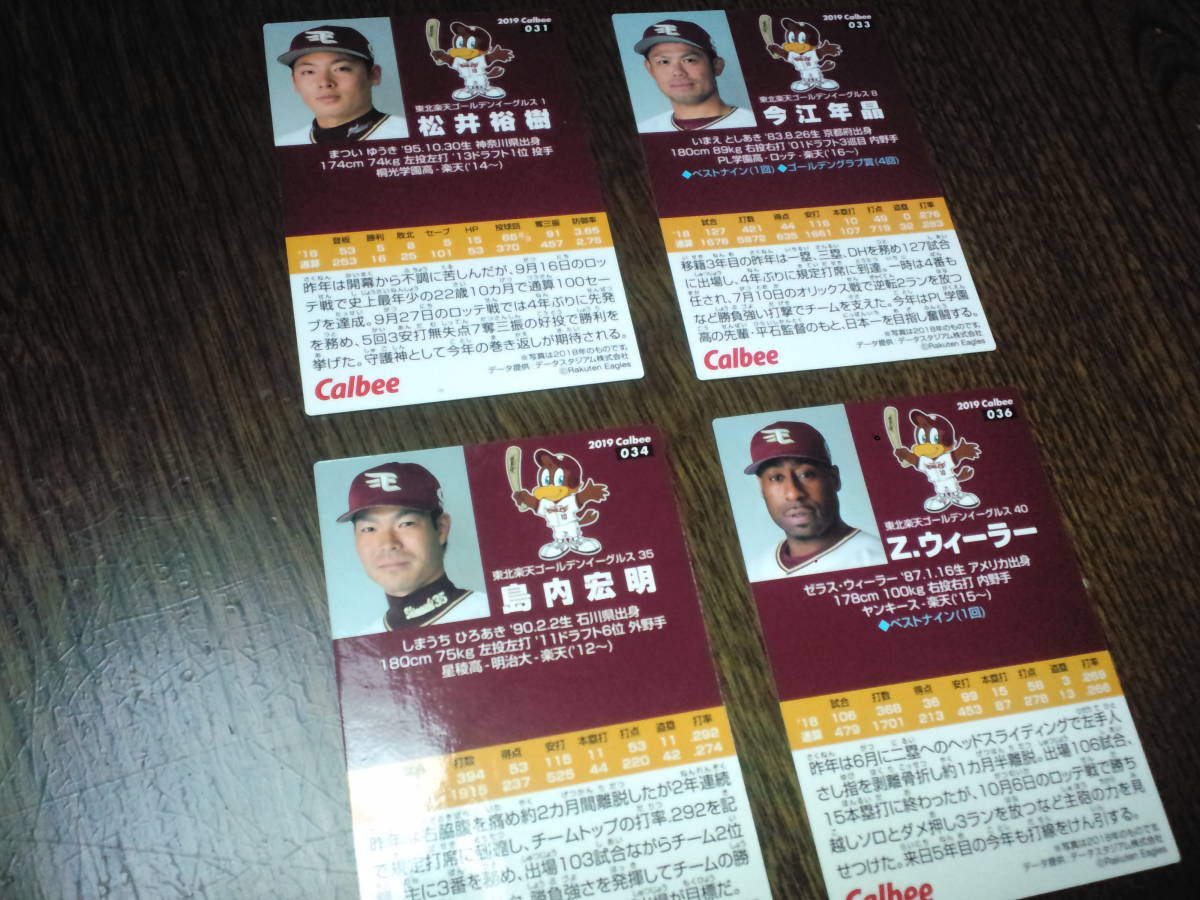 [同梱可]☆松井裕樹(031)今江年晶(033)島内宏明(034)Z.ウィーラー(036)★東北楽天ゴールデンイーグルス(4枚)2019年カルビー第1弾
