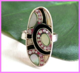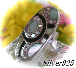 シルバー925銀のシェル貝殻入り リングtypeO[グリーン]11号ラスト1個/シルバージュエリーALL50%OFF