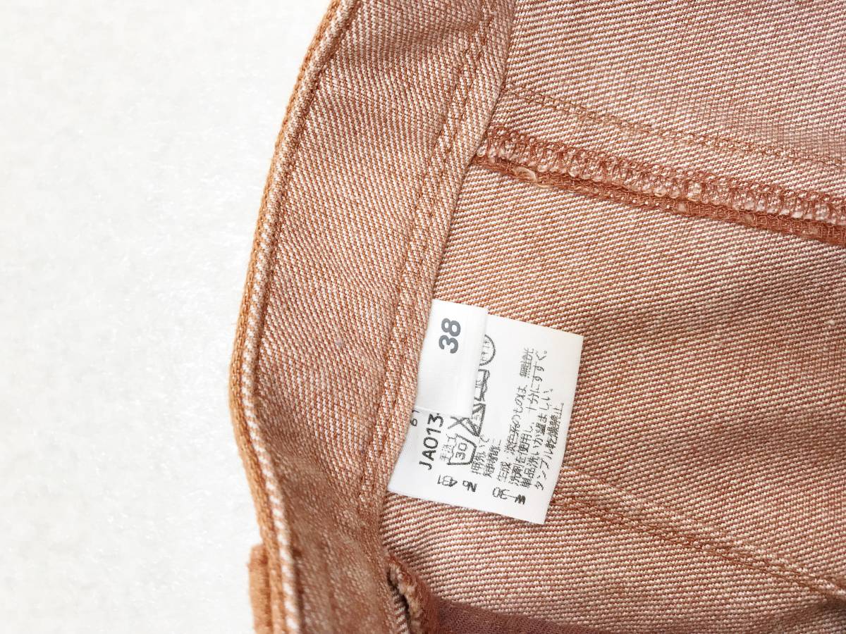 CORDIER ㈱ワールド 日本製 サイズ表記:38 お色め:オレンジブラウン 系 綿85%・ポリエステル10%・ポリウレタン5% 平置き採寸(ご参考) ウエスト:約32cm 着丈:約74.3cm とくに目立った汚れもなく、キレイな状態です。 USED品をご理解いただける方の入札ご検討をお願い致します。 ◆細かい点(ご利用に問題のない程度の小さな傷・匂い・汚れ・シワ等) は素人検品の為記載漏れがあることをご理解願います◆ ◆洋服のようなものは保管・発送時のしわをご理解ください。 ◎照明・パソコンの色彩環境等の違いから 掲載の画像と実物の色味が異なる場合がございます。 ★送料について★ ●日本郵便・・・料金については下記「配送方法と送料」をご参照願います。 ◆ゆうパックご選択の場合、何点落札されても同梱でお値段変わりません◆ *局留め賜ります *定形外は簡易包装になります。ご選択の場合はご了承ください。 ◆お支払いは【落札金額+送料】です。 送料がかかることを考慮した出品開始価格を設定しております。 ◆11時頃までのご入金確認で当日発送を心がけておりますが 対応出来ないときもありますので ご入金確認後の翌日~3日程度の発送でご理解ください◆ ★長期のお休みは自己紹介にて記載しております。 お手数ですがお急ぎの場合は一読お願いします。 | |||