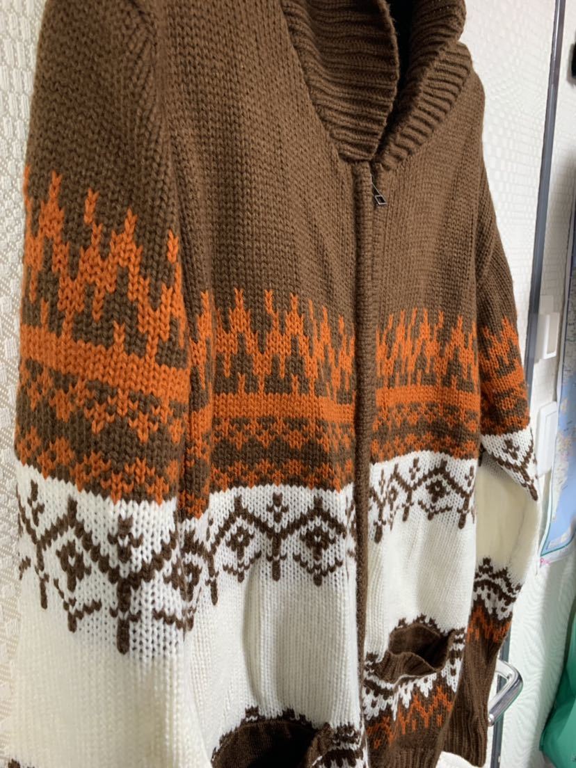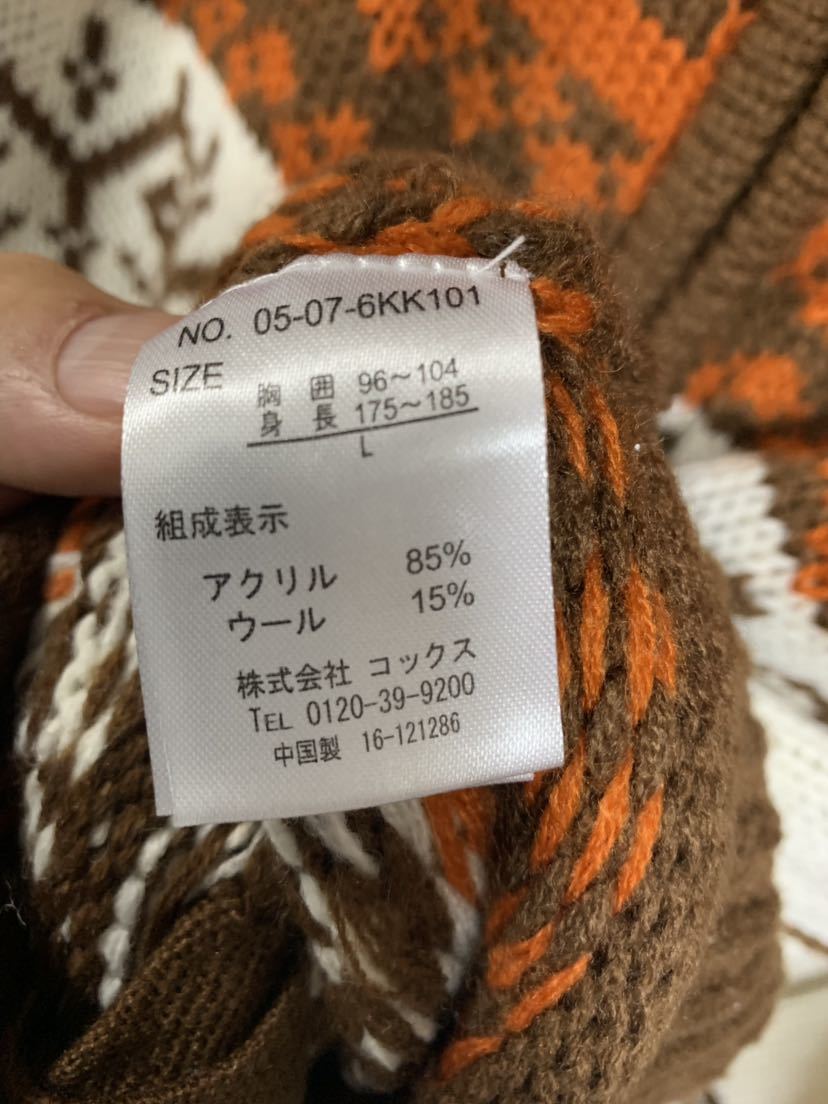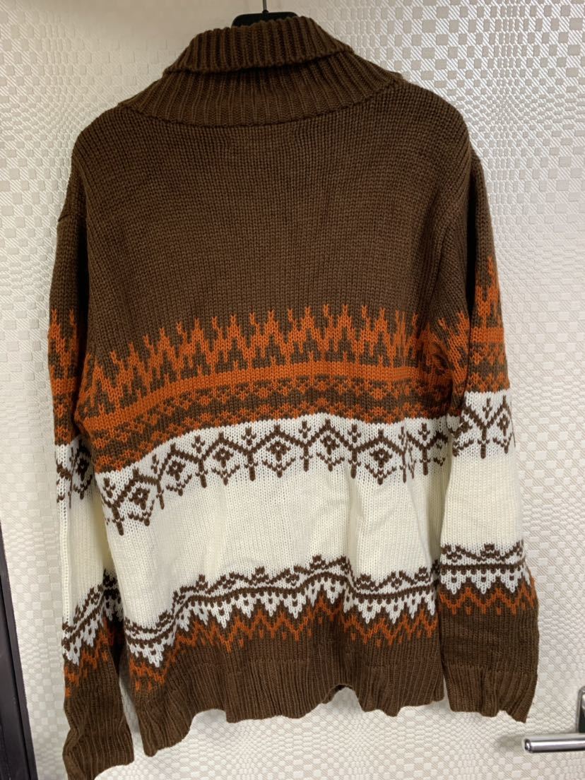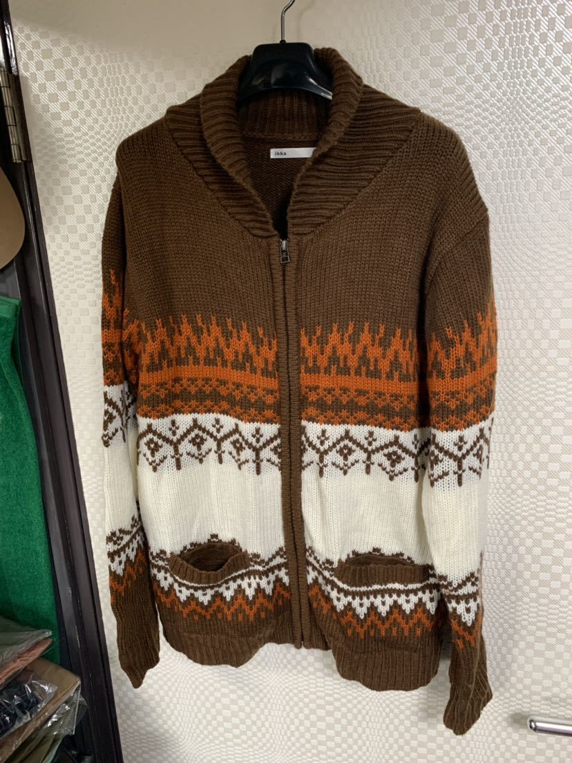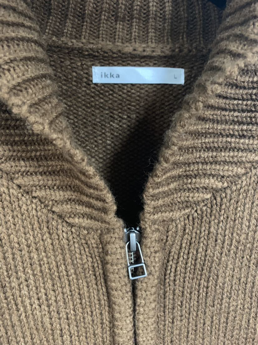 ikkaのフルジップデザインセーターです。サイズは L表記で平置き脇下身幅53着丈69肩幅49袖丈65センチ位です。