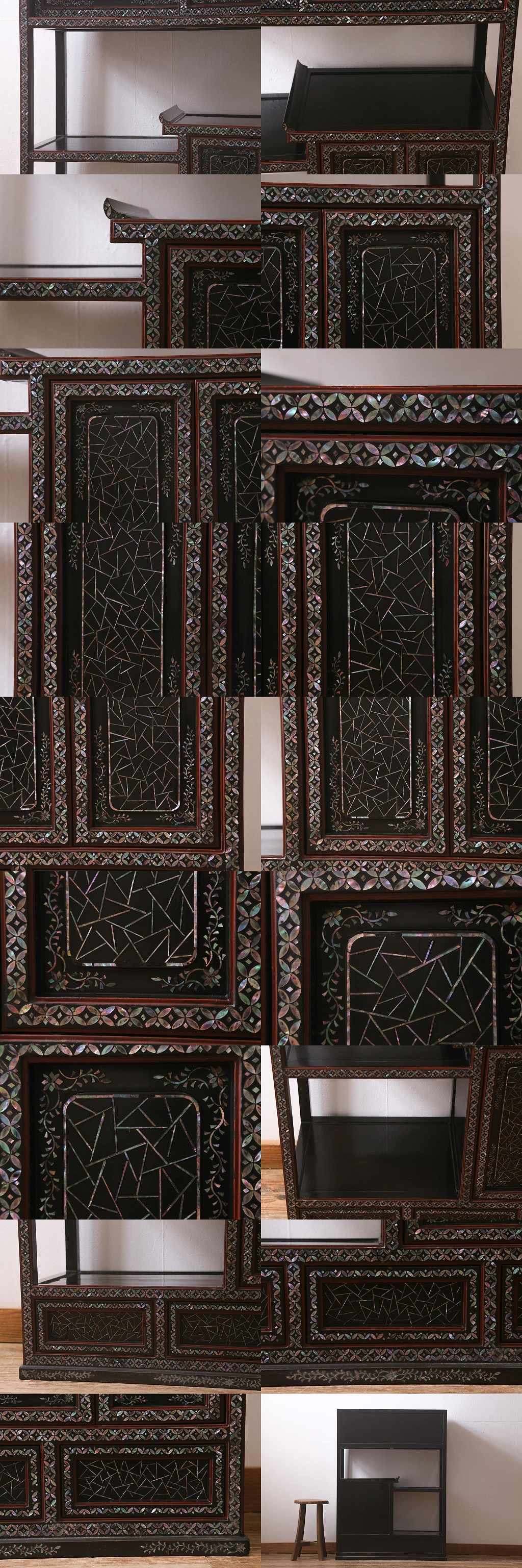 時代物 昭和中期 細かな螺鈿の装飾が美しい飾り棚(飾棚、茶棚)(R-042551)