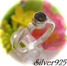 シルバー925銀の天然石スモーキークォーツ付ピンキーリング/3号ラスト1個