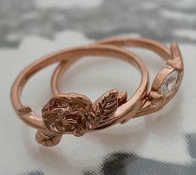 シルバー925銀のピンクゴールド コーティング リングtypeH[ローズリーフ2連]9号.11号.13号より/シルバージュエリーALL50%OFF