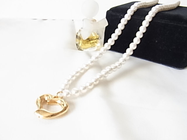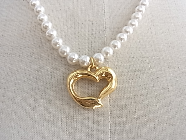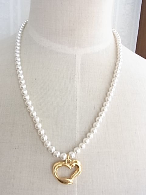 プラスチックパールにオープンハートの可愛いトップ 大人可愛い ガーリー 品あるネックレス◆◆