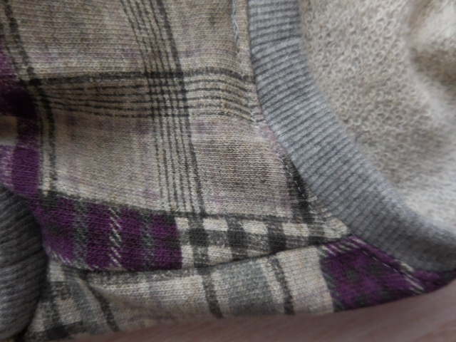 家庭用ミシンで作っているため、ニットの毛羽立ちがあります。