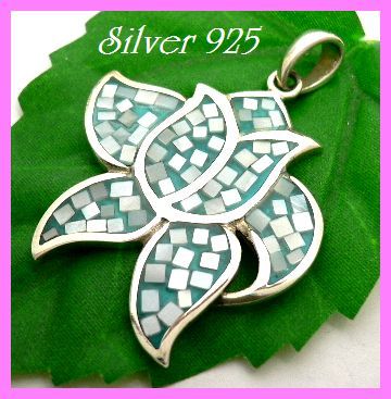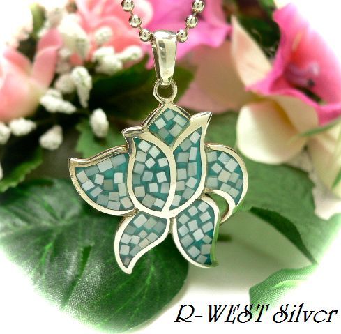 シルバー925銀のシェル貝殻入り ブルーフラワー ペンダント
