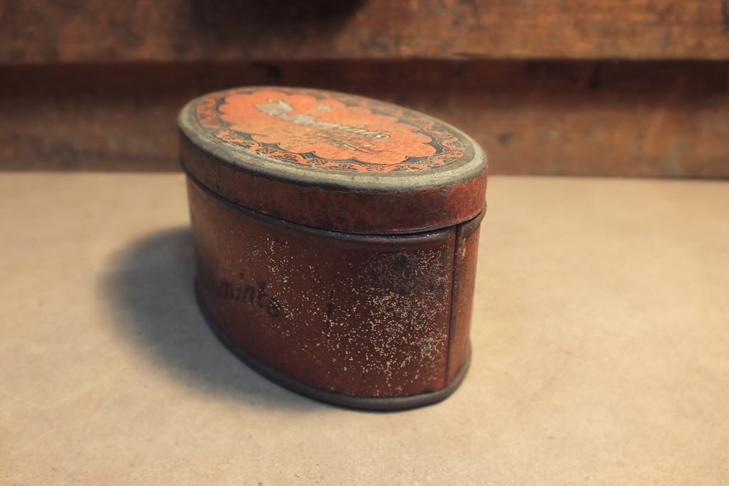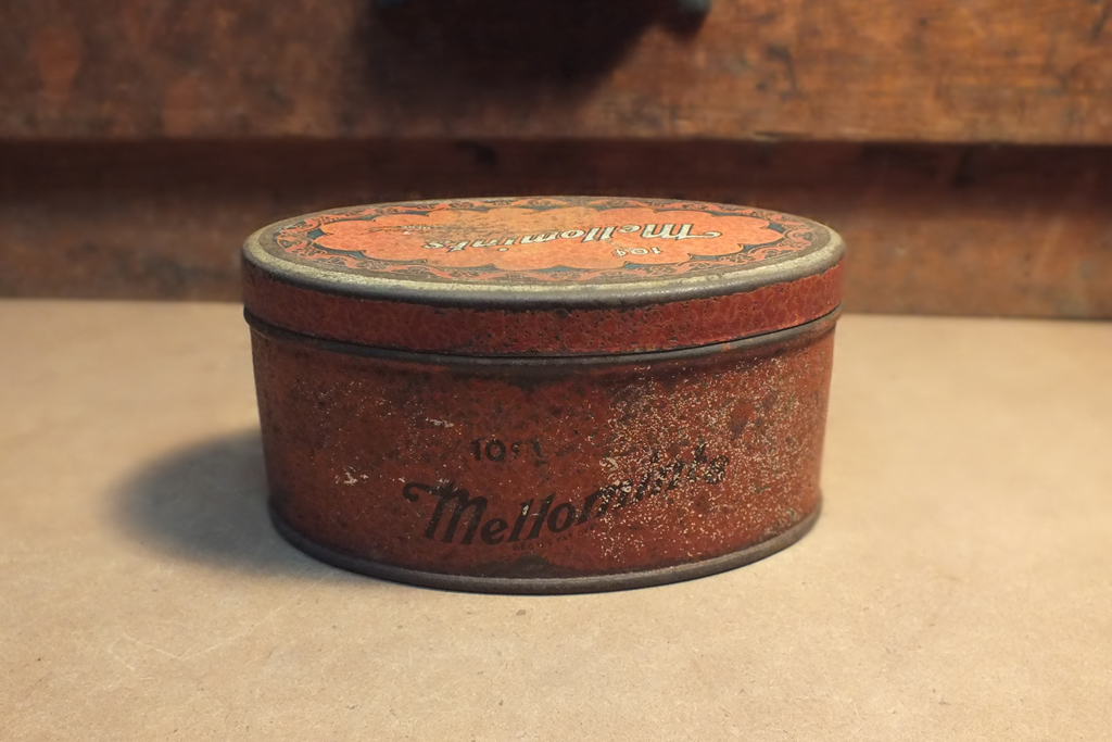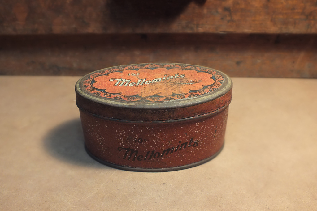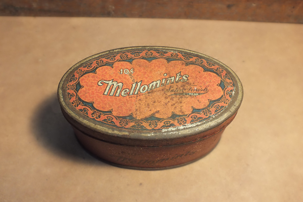 [ヴィンテージ缶] TIN メロミンツ キャンディ オーバル ブリキ缶 Vintage oval 10c Mellowmints candy tin