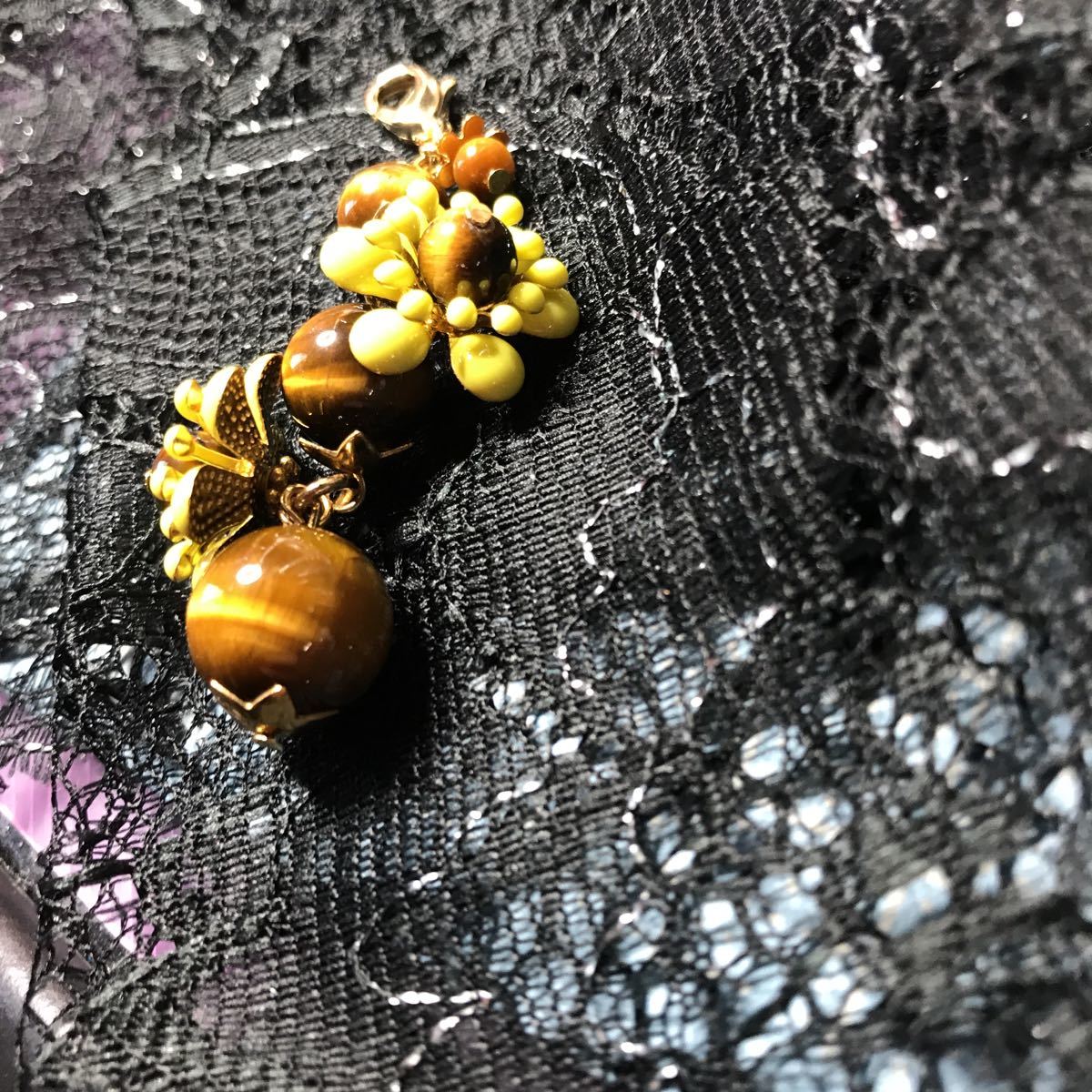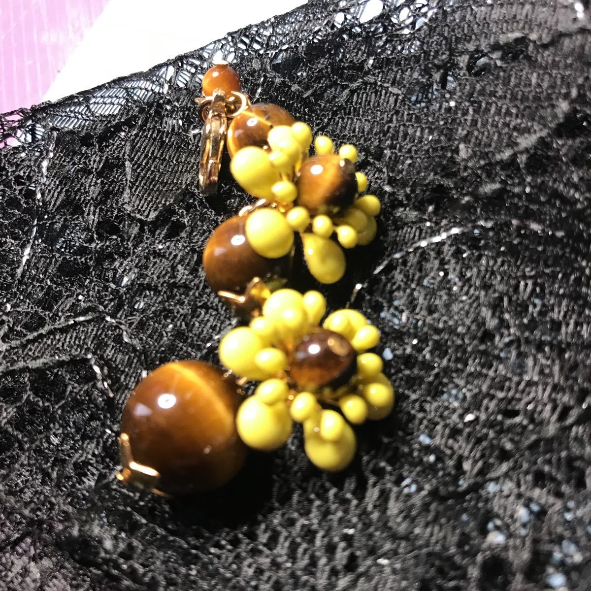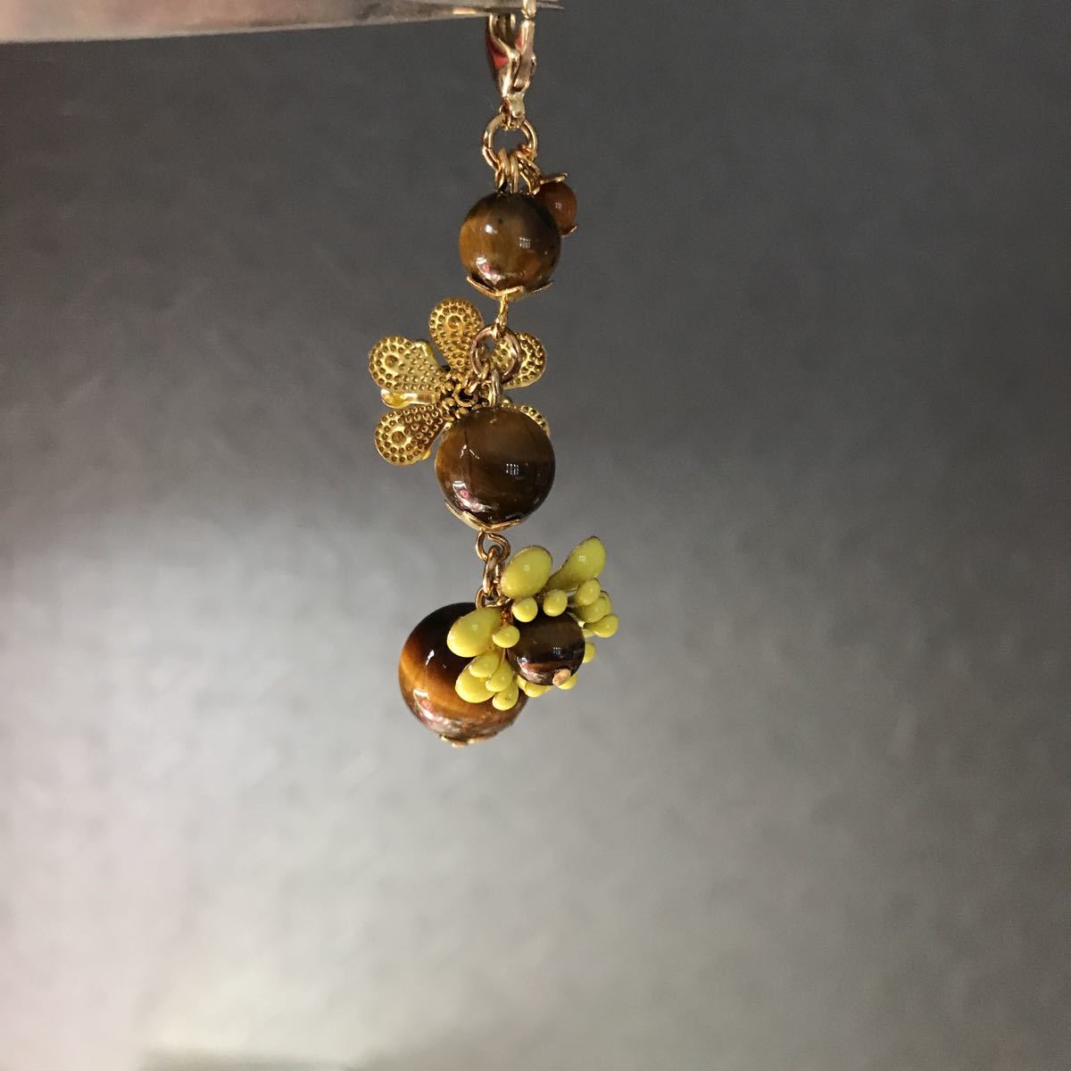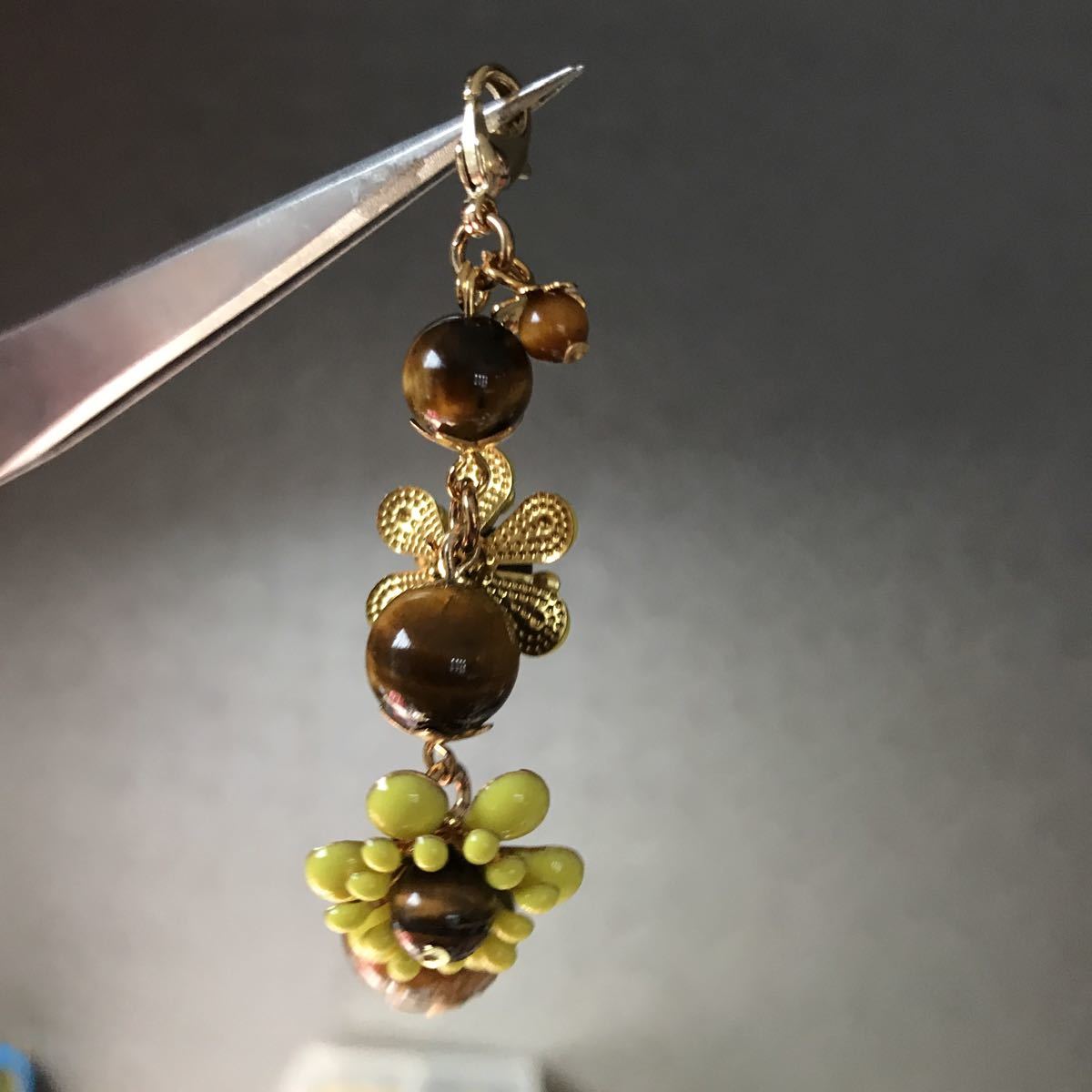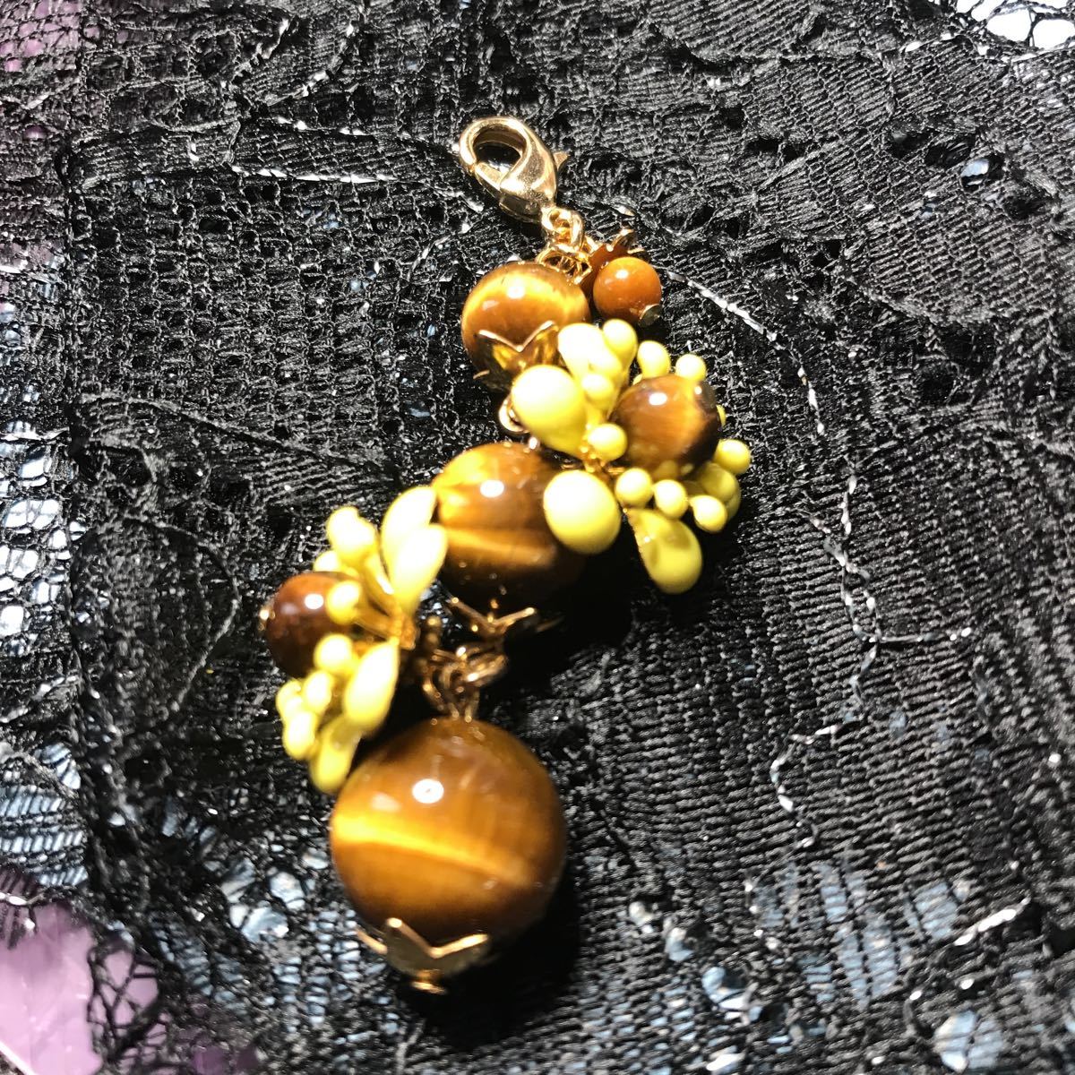 タイガーアイは12ミリ10ミリ8ミリ6ミリ4ミリ使用しております、黄色いお花つけると地味目なタイガーアイもこんなに可愛いくなります