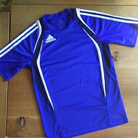 s746 良品! ■adidas■ アディダス CLIMACOOL 青系 サイズM~ 半袖ゲームシャツ Tシャツ 身幅47 着丈70 ラグラン41 サッカー トレーニング