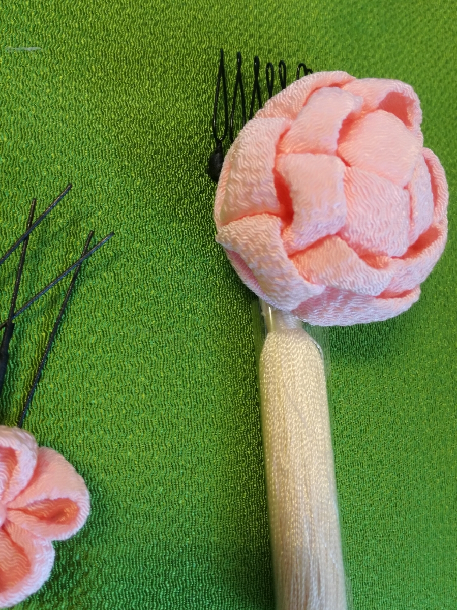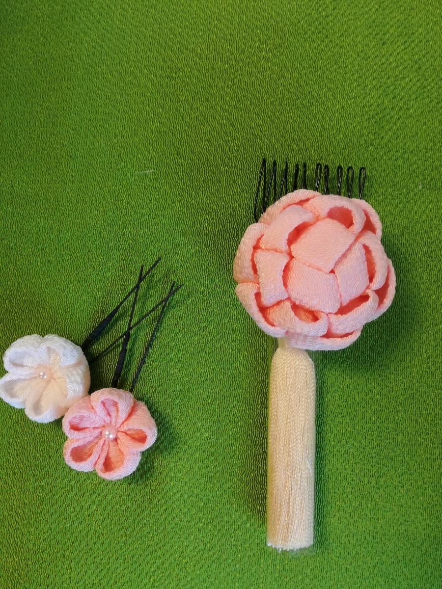一つ一つ丁寧に手作りしたつまみ細工の髪飾りです。