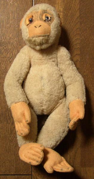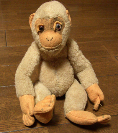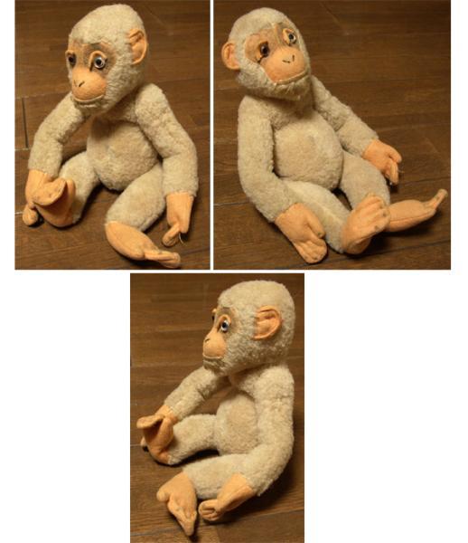 英国購入 ヴィンテージ MONKEYです。状態は、古い物ですので、擦れや薄汚れと、右目の裏の金具が少し錆びて白目に変色があります。あと胸の辺りに薄い汚れと、両手先から中の針金がでていますが、ビンテージの雰囲気ある物です。イギリスのアンティークショップで購入しました。とても可愛い作りです。両手・両足を動かす事ができます。中はOLDの木屑が入っています。古い物ですので、状態はそれなりですが、年代物の風格とレトロ感ある物です。座った状態の高さ18cm、全体の高さ27cmです。ビンテージ物とご理解頂いて、ノークレーム、ノーリターンでお願いします。