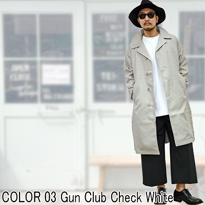 軽やかな質感のチェック柄ゆったり系ステンカラーコート ショップコート。