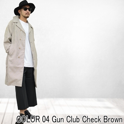 チェック柄ゆったりロング丈スプリングステンカラーコート12643新品ガンクラブチェックブラウンL