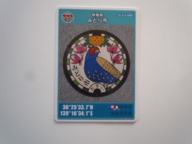 マンホールカード 群馬県みどり市 非売品です。※ 初期ロット001 頂き物のため微小の傷、汚れ等有り得ますので神経質な方、新規の方の入札はご遠慮ください。 ノークレーム、ノーリターンでお願いします。 他にも出品しています。