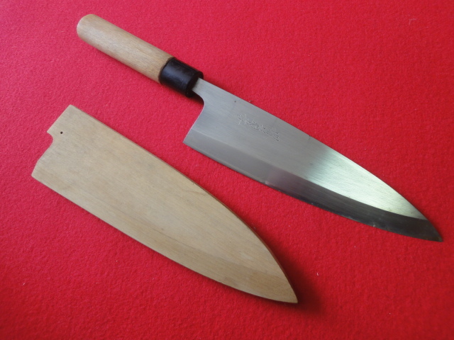 【堺菊孝】出刃包丁 ※別打 刃渡20.7㎝ 全長37㎝ 峰厚8.9㎜ 片刃 ※鞘付 ※中古品 ※全国一律送料1100円