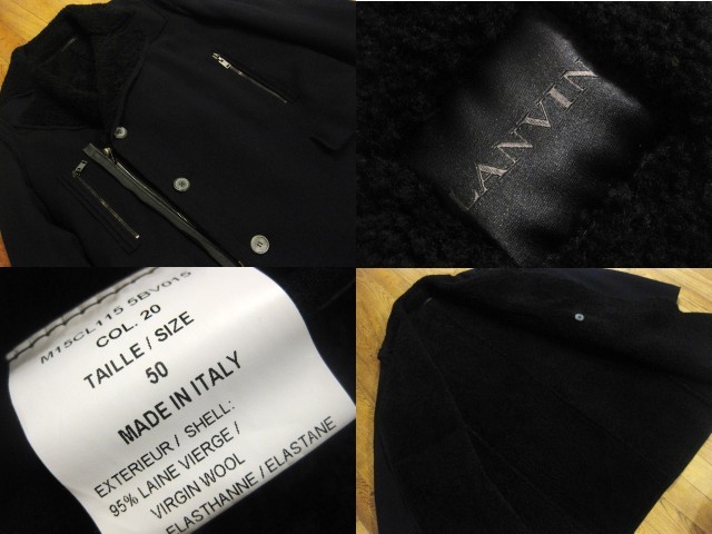 名作 本物 超高級 最高峰 超美品 LANVIN ランバン レザー 切返し 裏ボア ジッパー デザイン コート 50 ロング ブラック 黒 イタリア製