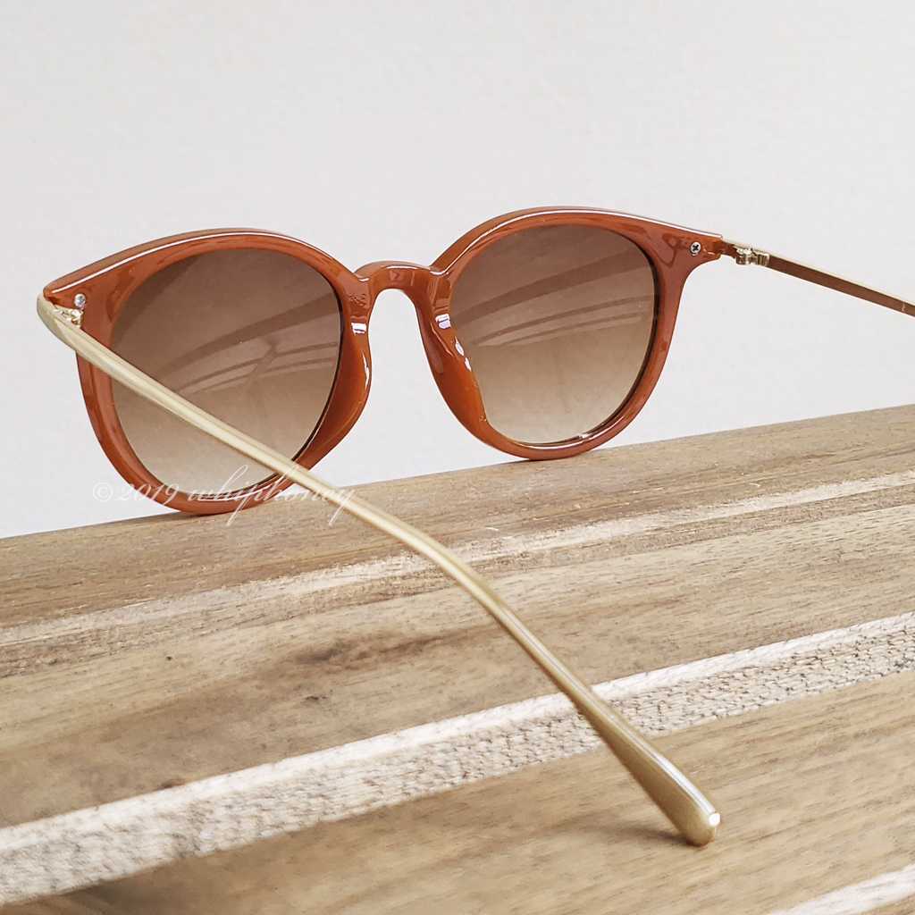 ラウンドボストン テラコッタブラウンゴールド コンビスモーク