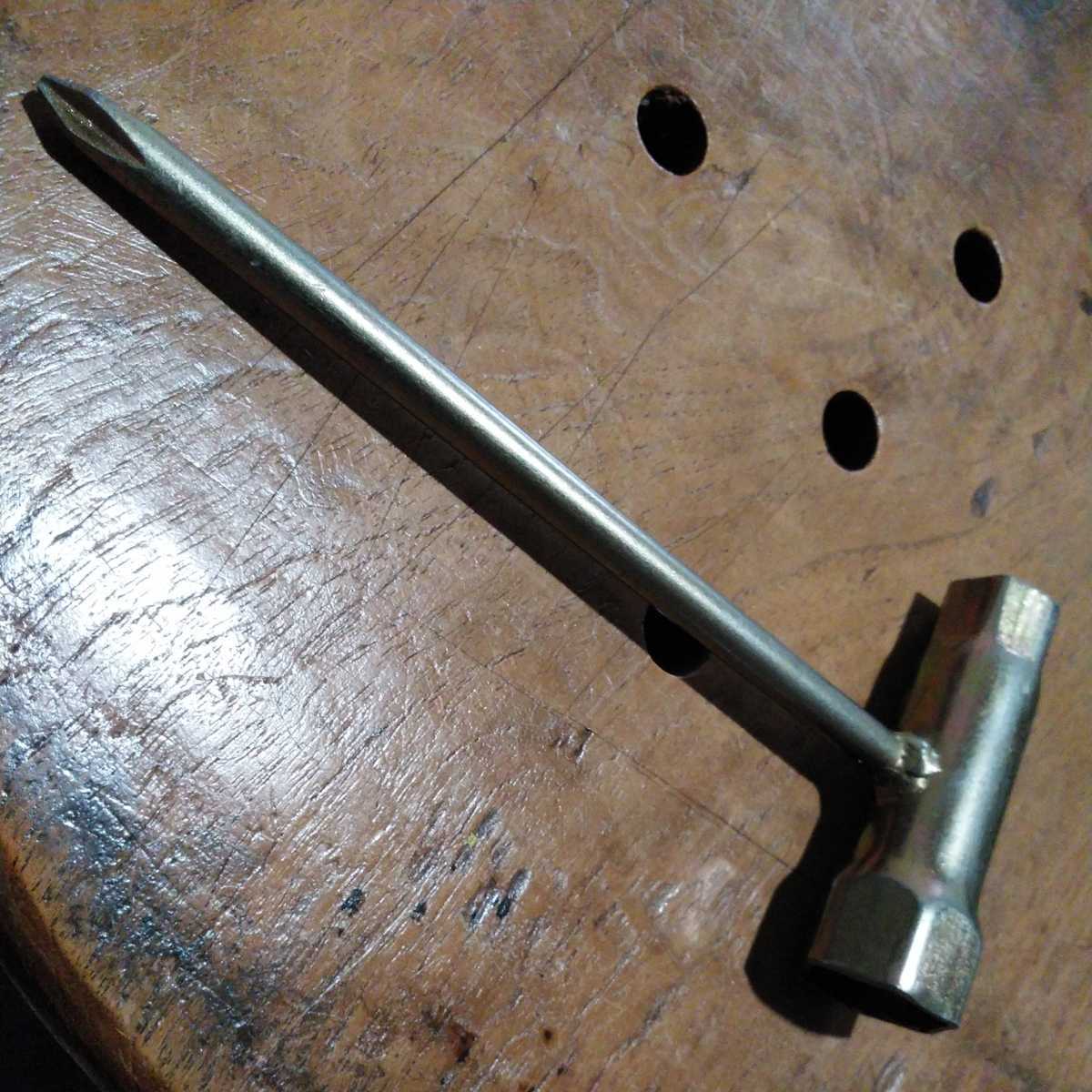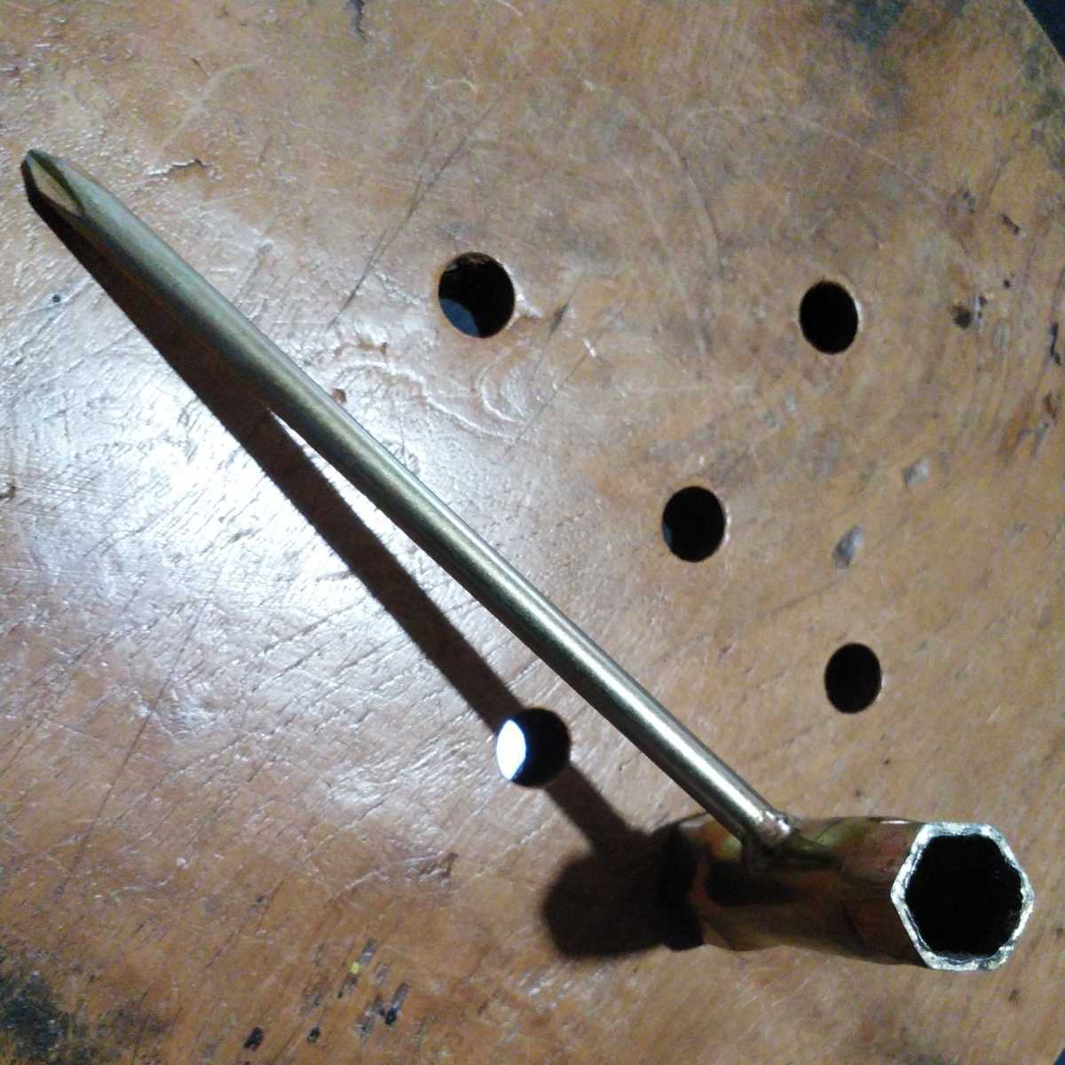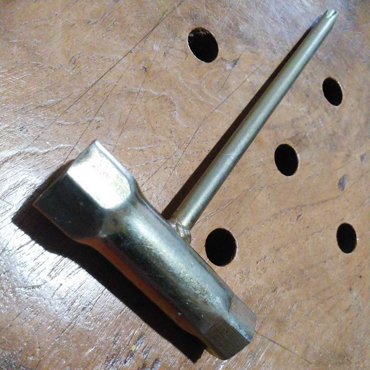 こちらは、メーカー不明の車載工具 プラグレンチです。