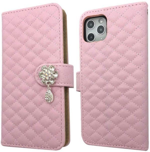 FRL-SHOP◆ iPhone11 Pro ケース ◆ 花としずく キルティング フラワーデコ 手帳型 手帳 カバー F-18pk☆