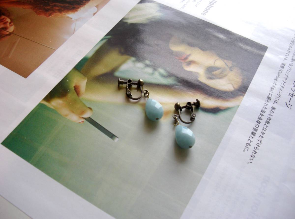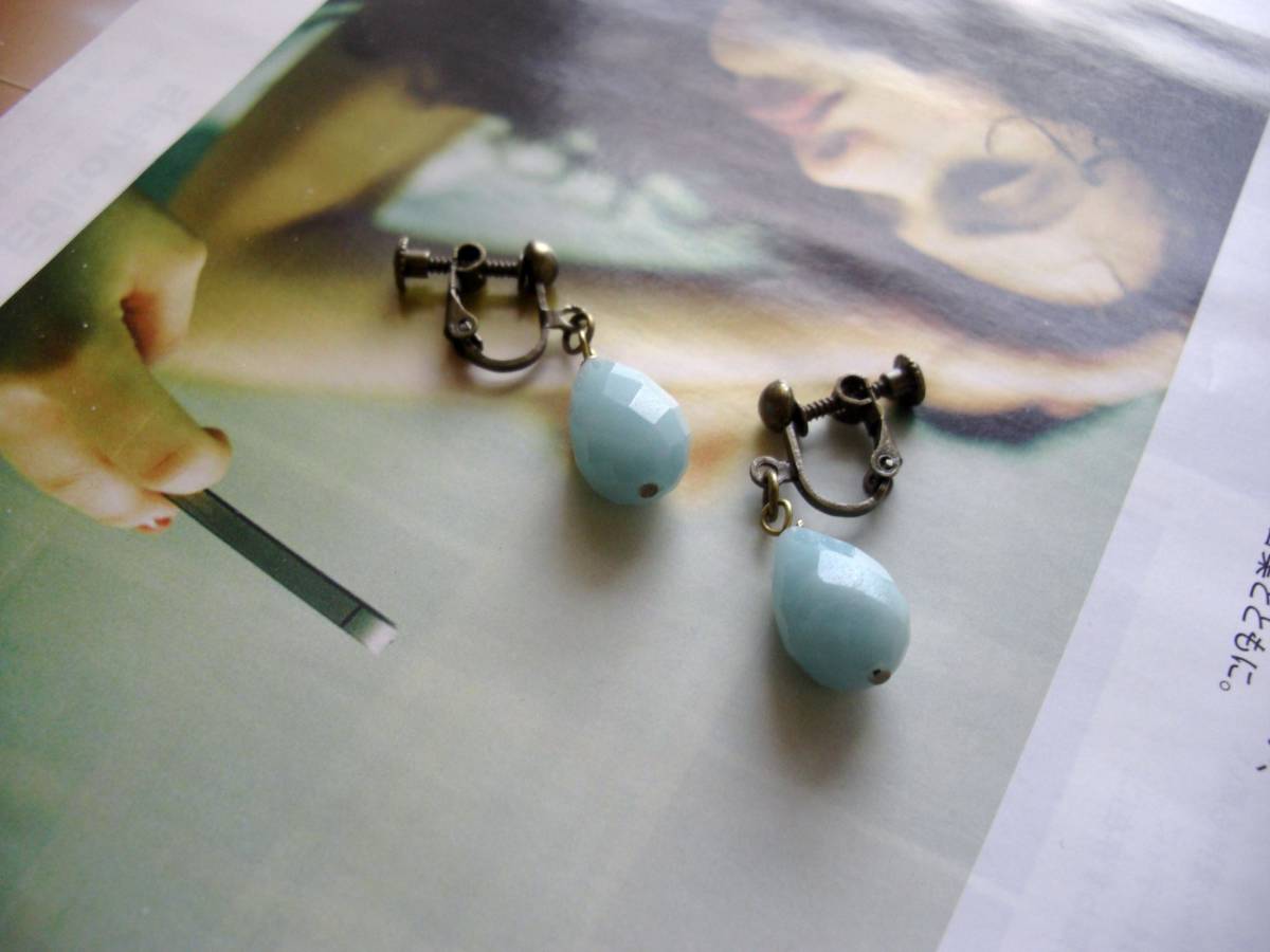 大人色に魅せられて・・シリーズです♪神秘的なアマゾナイトの一揃い・・可憐な水色のアマゾナイトのイヤリングです♪カットが美しいドロップカットのアマゾナイトがモードな表情です♪色々なシーンで楽 しんでいただけます♪♪10ミリ×15ミリ位のドロップ カットのアマゾナイトです♪長さは3・5センチくらいです♪ピアスに変更も出来ます♪お揃いのシリーズも出品しています♪ハンドメイドを ご理解頂いてノークレーム、ノーリターンでお願いします