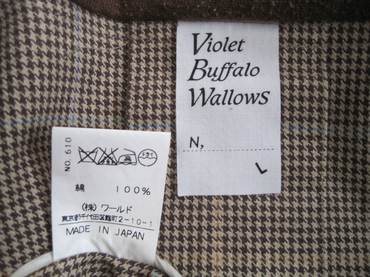 バイオレットバッファローワローズ グレンチェック 綿ジップジャケット 。Lサイズ。