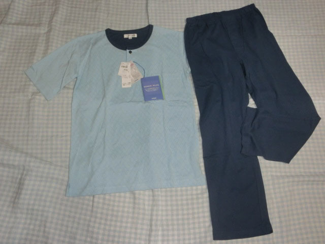 定価3980円 色は水色の柄 パンツは紺 素材:綿60%ポリエステル40% 首ゴム綿60%ポリエステル35%ポリウレタン5% サイズS 股下丈64.5cm 他にも洋服、バッグ、靴、小物、本を出品していますので見てください。