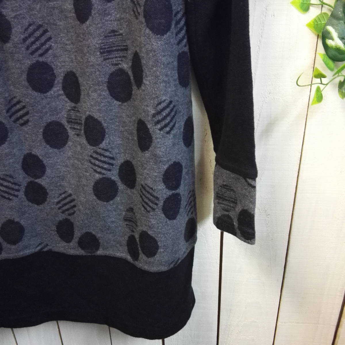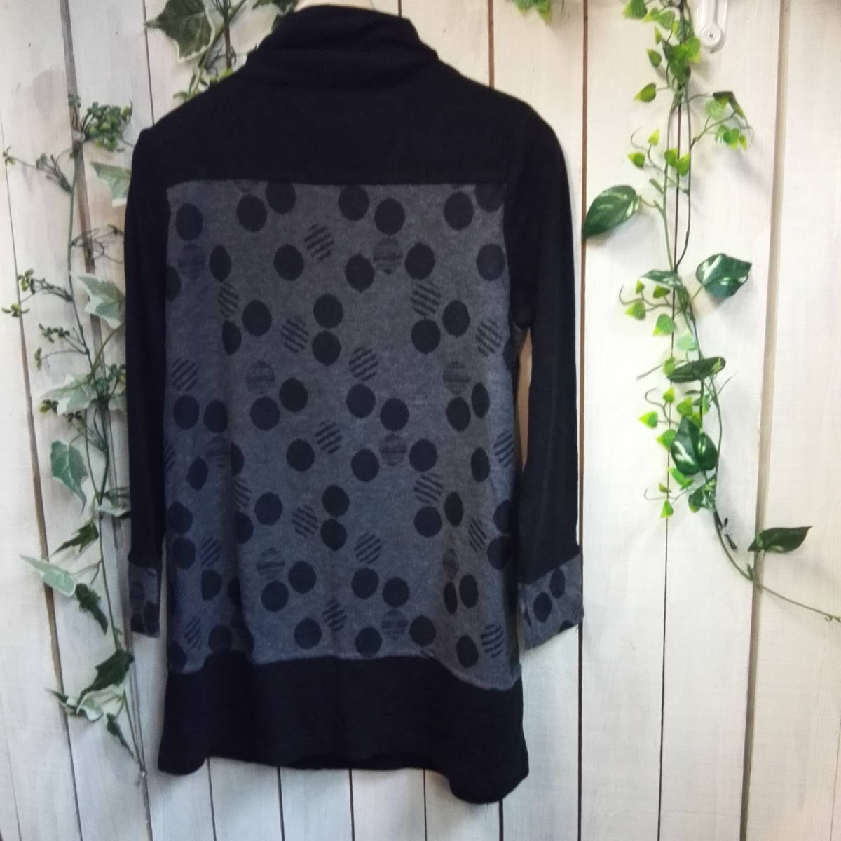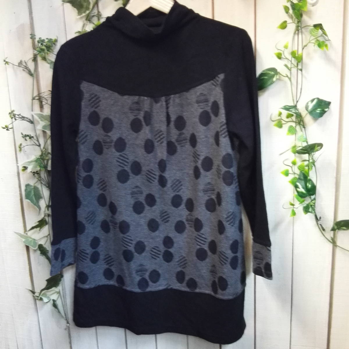 ★653★DONNEZ-MOI★ドネモア★ハイネックチュニック★黒×グレー★水玉★(株)アンフレール★サイズM 日本製