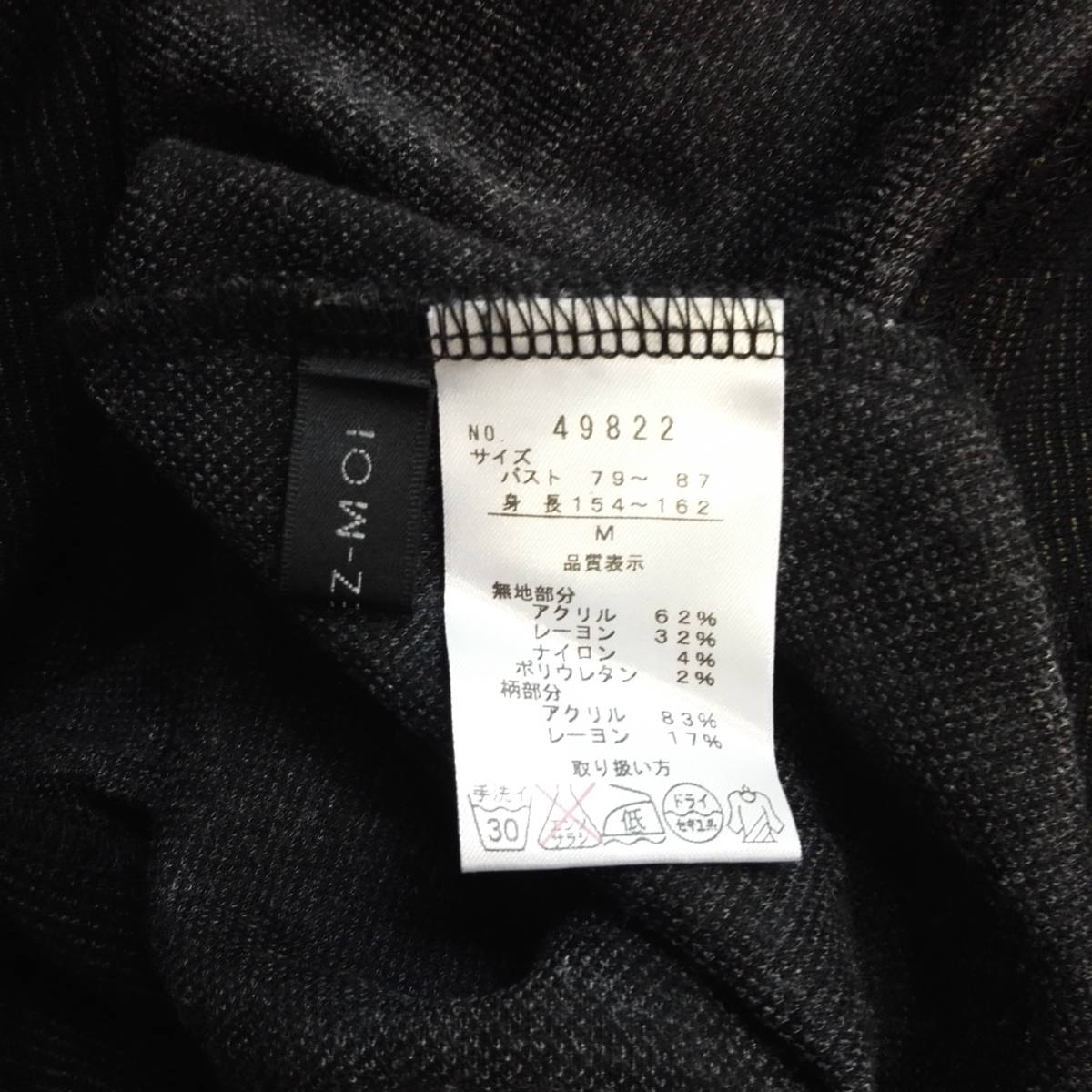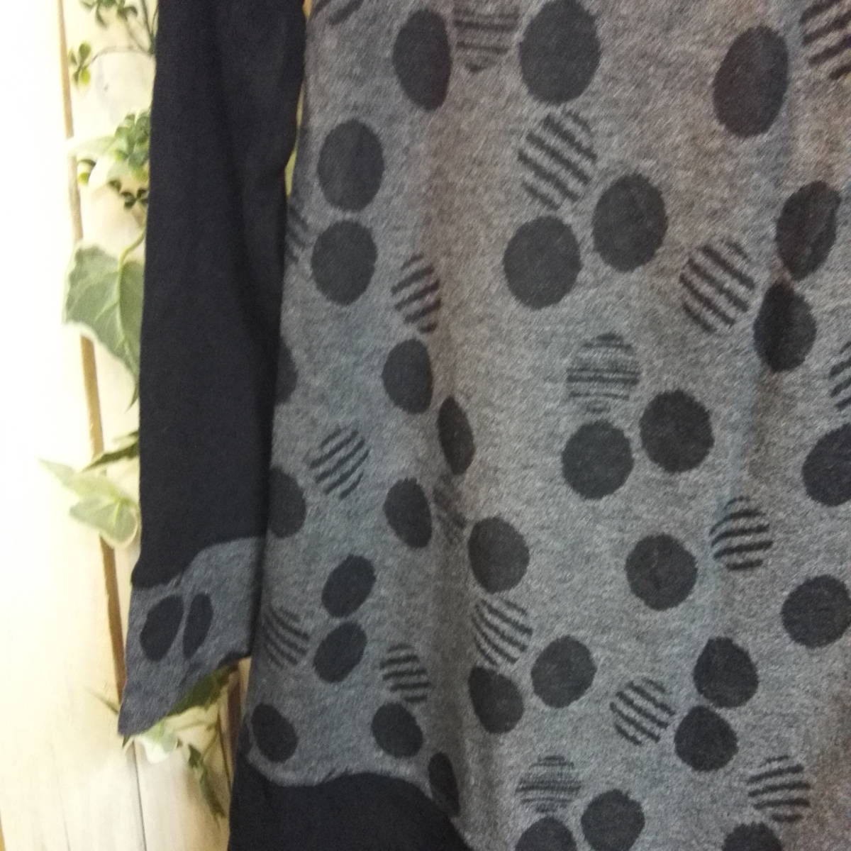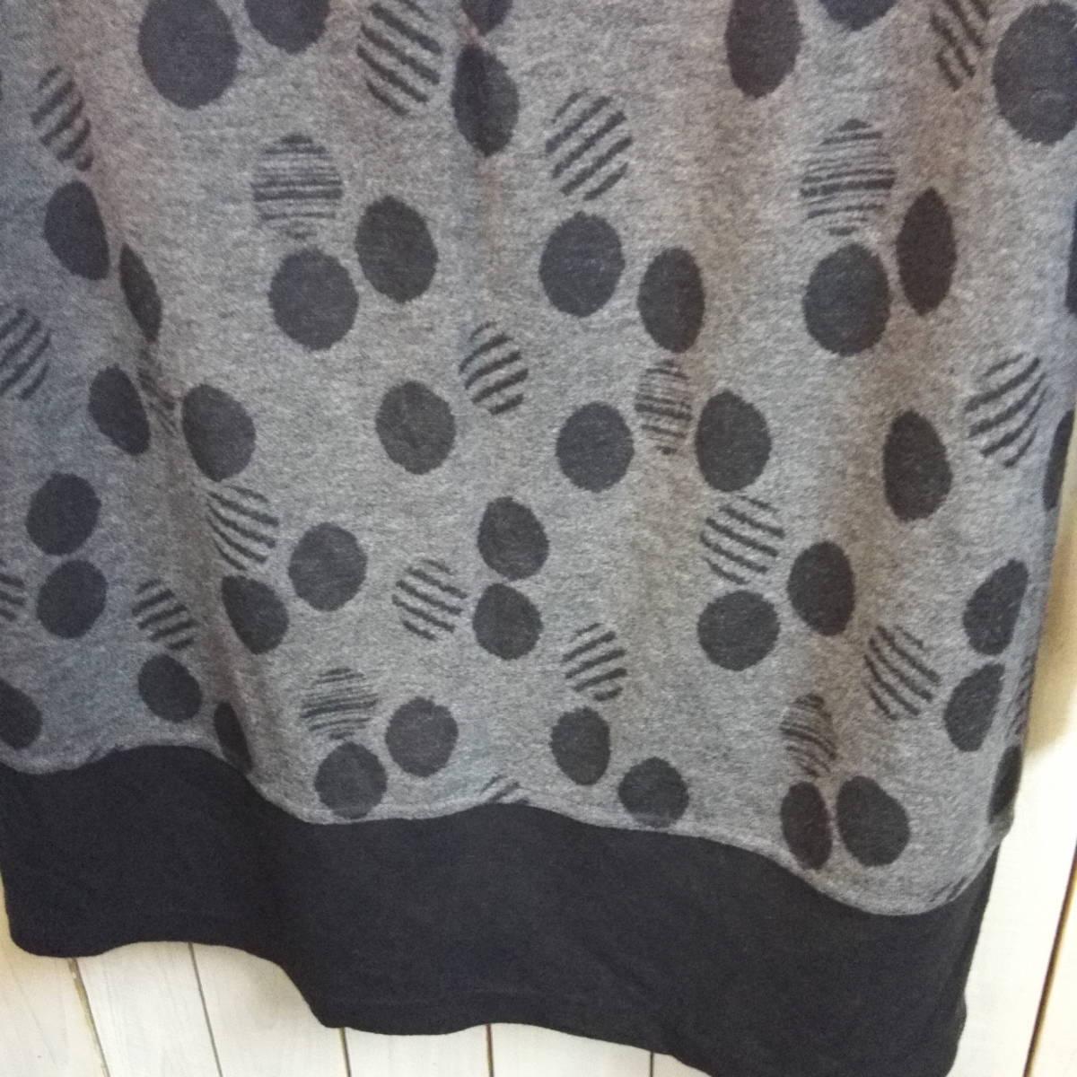 ★653★DONNEZ-MOI★ドネモア★ハイネックチュニック★黒×グレー★水玉★(株)アンフレール★サイズM 日本製