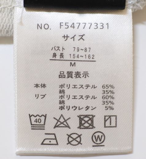 (リブ)   ポリエステル60%  綿35%  ポリウレタン5%