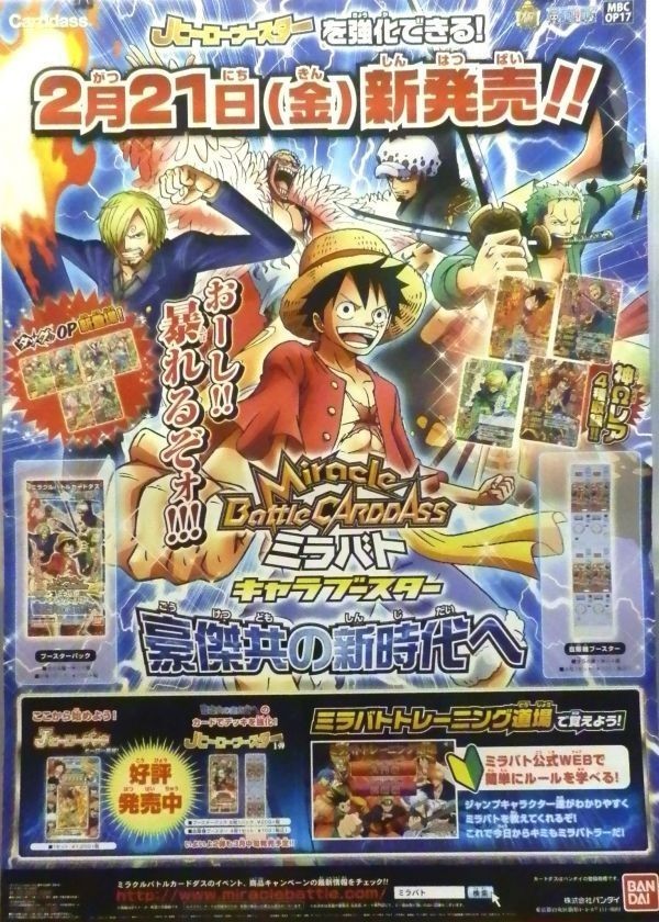#167 非売品 ミラクルバトルカードダス キャラブースター ワンピース 豪傑共の新時代へ 発売告知ポスター