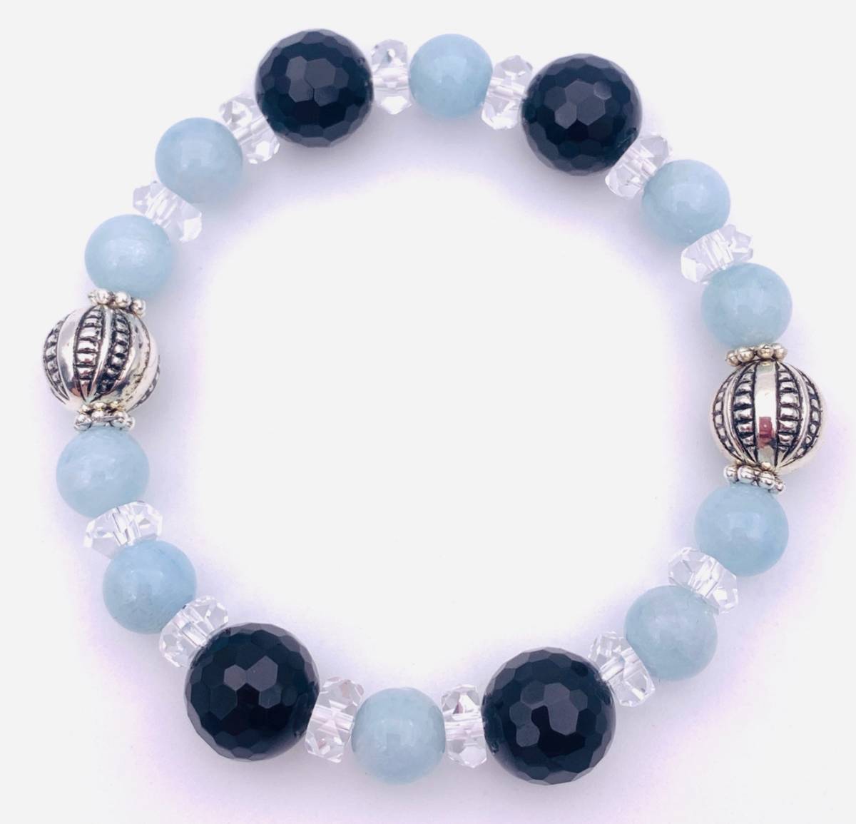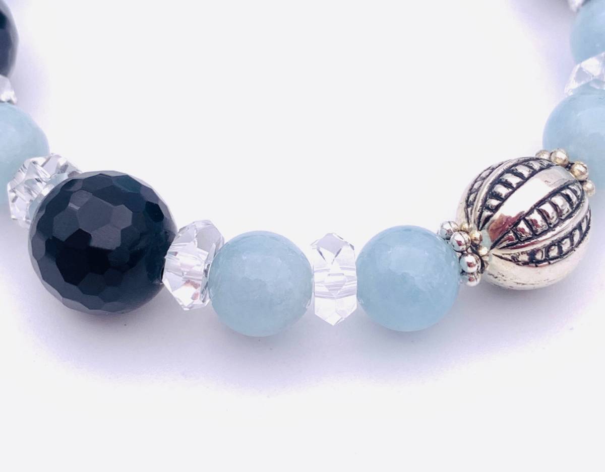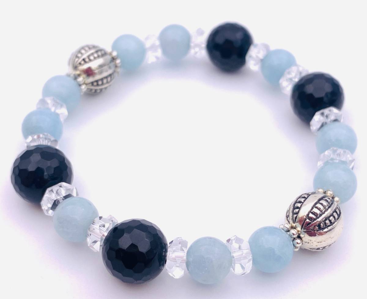 天然石アクアマリン&オニキスのブレスレット