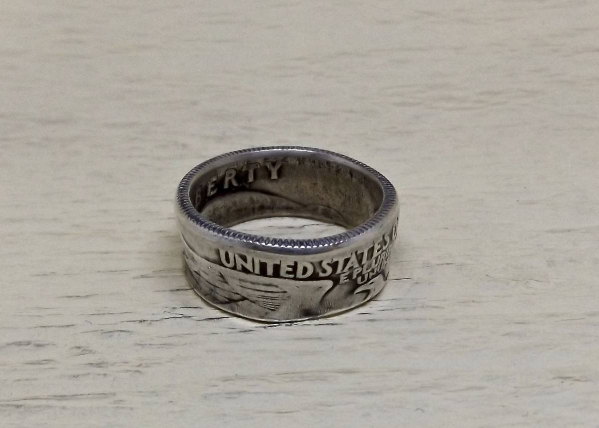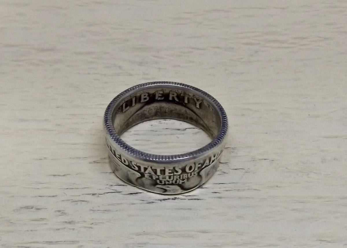 13号サイズ  新品 未使用  コインリング 25セント銀貨使用  (10581)送料無料 本物のコインで制作した手作り銀の指輪