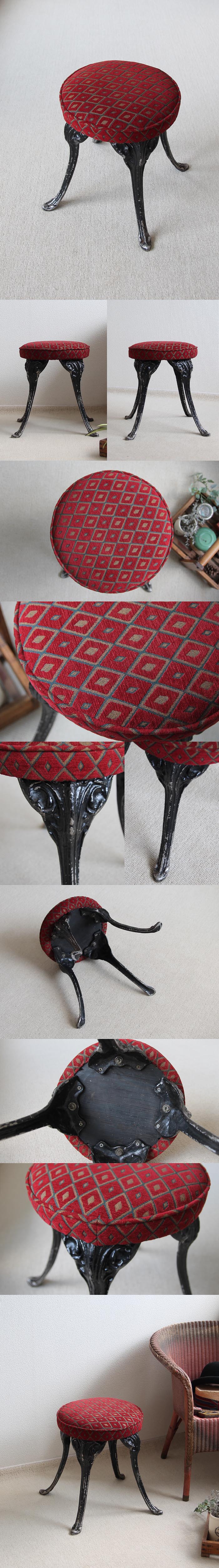イギリス アンティーク調 クッションスツール/丸椅子/ガブリオール/猫脚/アルミ脚/インダストリアル【重く丈夫なスツール】M-544