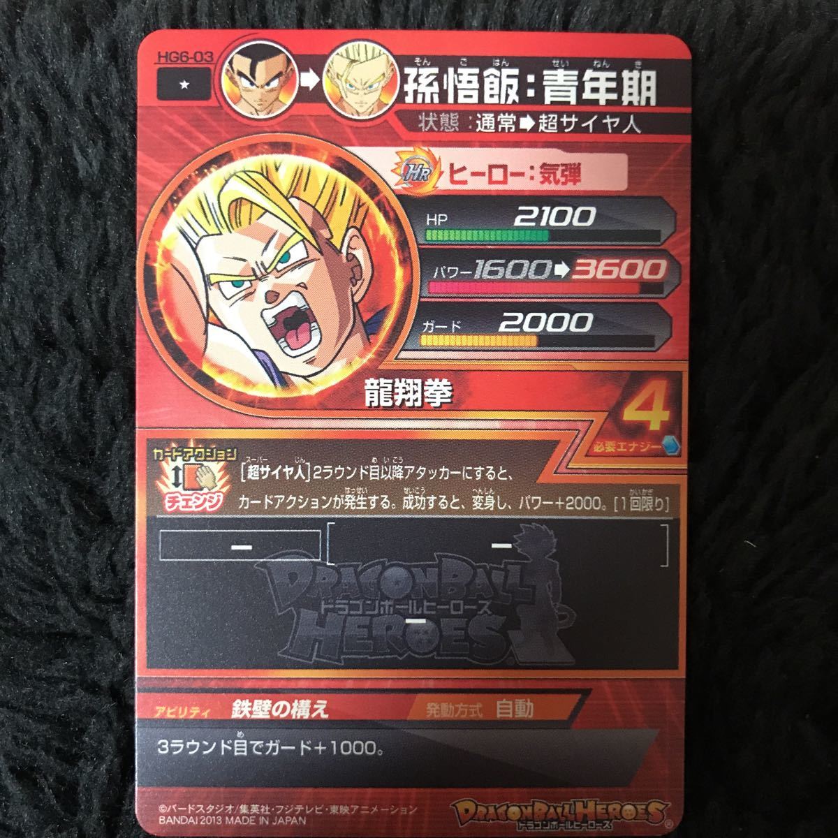 HG6弾コモン/ 孫悟飯:青年期(通常→超サイヤ人)/ HG6-03/ 技:龍翔拳/ ドラゴンボールヒーローズ/ レアリティ:☆/ 2013 BANDAI