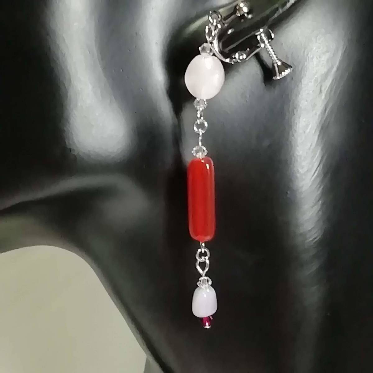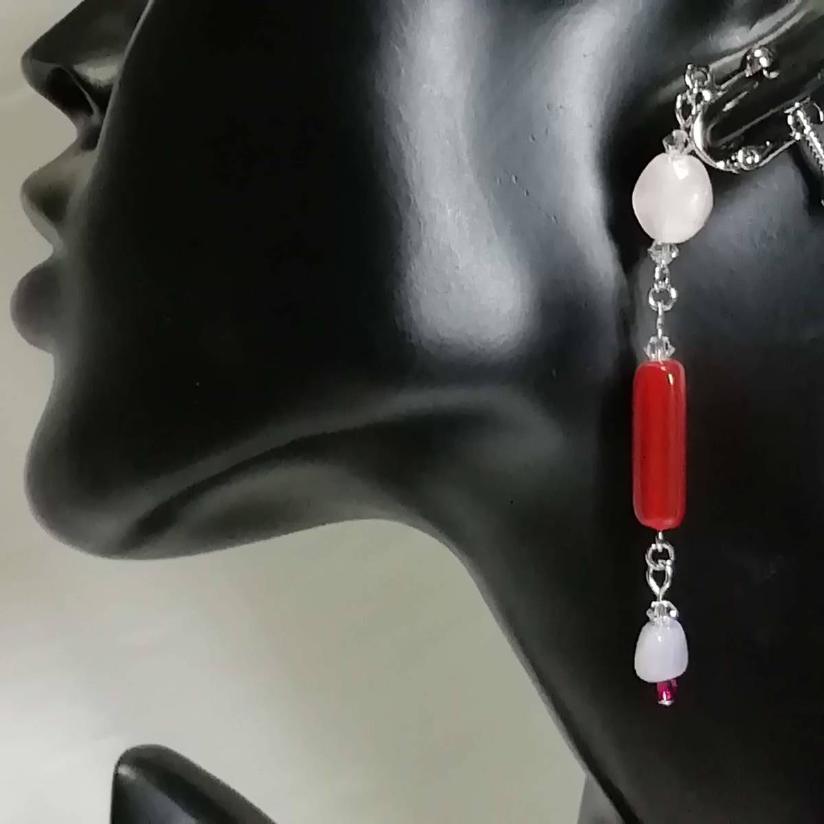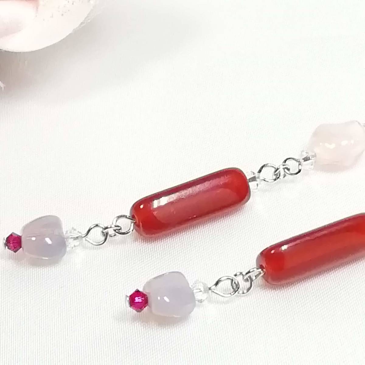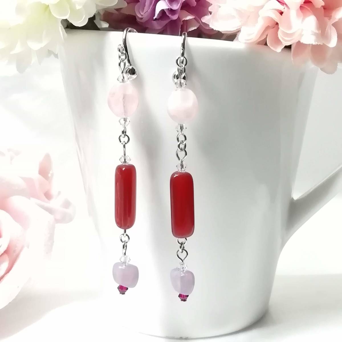 ★商品内容★ ★三角柱カーネリアンのハンドメイドイヤリング★フランスビーズ/チェコ/上品/個性的/シルバー/赤茶色/クリスタル/ルビー/薄紅/赤/薄紫 個性的な形のビーズとシックな色合いが 上品で落ち着きのある女性らしさを印象付けます*・.**.・。**.・。*・.**。・ まったりとしたカーネリアンの濃い紅色と シルバーパーツの組み合わせがアンティークな雰囲気を醸し出しています*・.**・.・。**.・。*・.**。・ 普段使いはもちろん、オフィスにも、 お出掛けやお洒落のワンポイントなどにも最適です・。**.・。*・**。・. 【素材】 fromフランスオパールアメジスト8mmx6mm fromフランス三角柱カーネリアン18mmx6mm チェコビーズブレストオーバルピンク9mmx8mm スワロフスキー5328クリスタル(オーストリア製)3mm スワロフスキー5328ルビー(オーストリア製)3mm カンより垂れ下がる長さは、約6.5㎝です。 Eー649 ★注意事項★ ***~ご購入前に必ずお読み下さい~*** *・*・*落札後について*・*・* *落札後4日以内にお手続き、ご連絡が無い場合は落札者都合で削除致します。 *発送日指定・ご入金の予定が1週間以上先をお考えの方は、入札の前に質問よりご連絡くださいませ。 予めご了承の上、ノークレーム・ノーリターンでお願い致します。 *・*・*商品について*・*・* *一点一点心を込めて作っておりますが、手作りなため多少の歪み等あるかもしれません。 手作りの味わいと、世界で一つだけの作品とお考えいただければ幸いです。 *デリケートな商品ですので、強く引っ張ったりすると破損する事もあります。 お取り扱いにはご注意ください。 *ご覧のPC、スマホによっては画像と実物の色味が多少異なる場合があります。 *基本イヤリング金具は跳ね上げネジ付き金具にて作成しております。 **ご希望によりピアスへの変更も承っております。 【フックピアス…無料/キャッチピアス…別途追加料金120円】 *その他…樹脂ノンホールピアス(無料)・カン付き樹脂ノンホールピアス(別途追加料金20円)にも変更をお受け致します。 ~ご注文の際にメッセージ欄よりお申し付け下さい~ 尚、金具変更のご希望が無い場合は、掲載された写真の金具にてお送り致します。 *金属アレルギーや化学物質アレルギーへの対応はしておりませんので、ご心配な方はご遠慮下さいますようお願い致します。 *永くご愛用頂くために、ご使用後は柔らかい布等で軽く拭いてください。 *・*・*プレゼント用梱包のご要望もお受けいたします*・*・* *その際は、梱包費用が別途で必要となりますのでご注意ください。 また、ご希望の梱包タイプによって、発送方法が変わりますので、送料が別途必要となります。 プレゼント用梱包タイプ 【袋→100円】 発送方法【クリックポスト(送料無料)】 プレゼント用梱包タイプ 【箱→200円】 発送方法【レターパックプラス(別途520円)】 袋タイプは【合計100円の追加料金】、箱タイプは【合計720円の追加料金】となります。 ◆ご希望の場合は、必ず商品ページをウォッチリストに登録した上で落札前に質問にてお問合せ下さい。◆ ◆ご希望を承り次第、一度出品を取り消し、プレゼント用梱包費用、送料などを追加した金額へ変更し、再出品致します。◆ *再出品後に再度検索して頂く手間が省けますため、プレゼント梱包をご希望の場合は必ずウォッチリストへのご登録をお願い致します。 金額変更後の再出品から3日以内に落札されなかった場合、誠に勝手ながら購入する意思がないとみなしまして、元の金額へ修正致します。 また、修正後、再度プレゼント用梱包のご希望のお問い合わせを頂きましても、お断りをさせていただきますのでご注意ください。 ご不明な点がございましたら、落札前に質問よりお願い致します。 ***ご質問について*** *ご購入前にお願い致します。 日中は仕事をしておりますので、ご返事が直ぐに出来ない場合がございます。 出来る限り早い対応を心がけますが、ご了承ください。 また、発送までには、お振込み確認後、翌日の発送を心がけておりますが、仕事の都合により2~3日程かかる場合がございます。(その際にはナビにてご連絡いたします) お急ぎの場合は、極力対応いたしますが、場合によっては対応致しかねる事もあります。ご了承下さいませ。 | |||