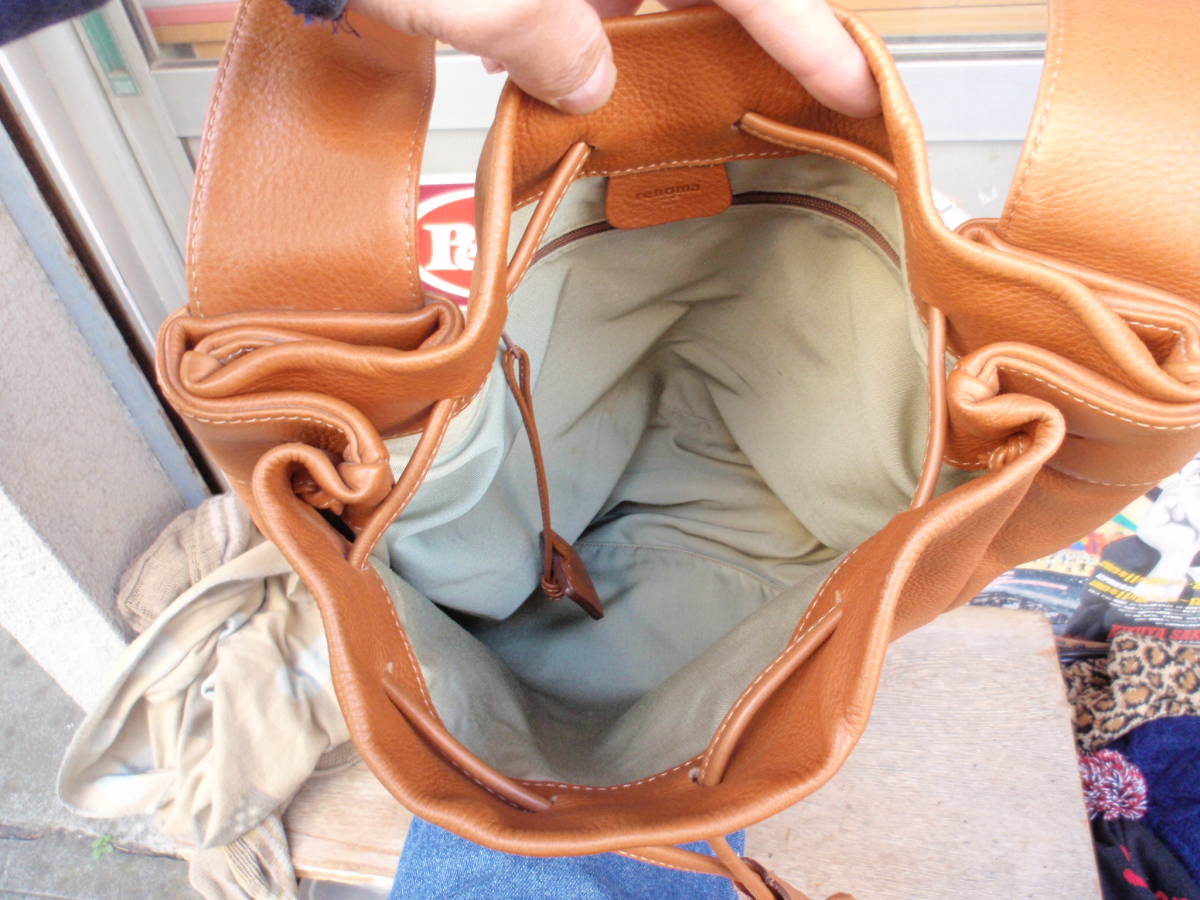 中古品ですので少し使用感や内生地にシミがいくつかありますが、あまり使って無かったので、外見上の目立った汚れや傷は無く状態は良いかと思います。レノマ「SACS」の楕円底な総革でできたショルダーバッグになるかと思います。サイズは横(底部直径)30センチ、縦35センチ、まち(底部最大)16センチ位です。正規品。