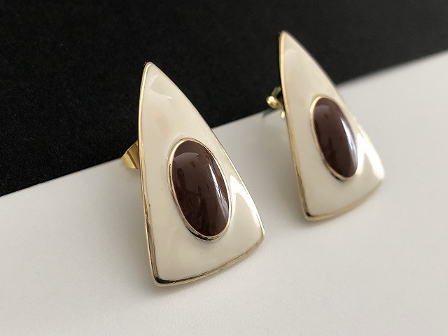 ブラウンとアイボリーのエナメルカラーが素敵なピアスです