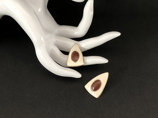 ブラウン アイボリー エナメルメタル ピアス USA [ap-388]