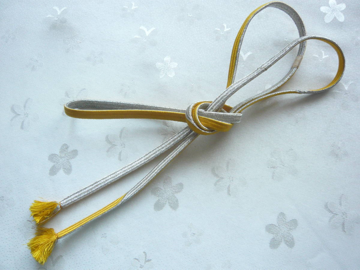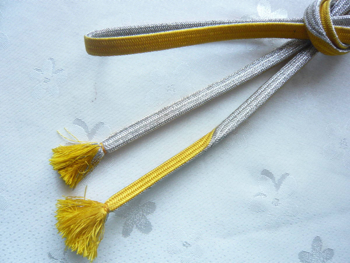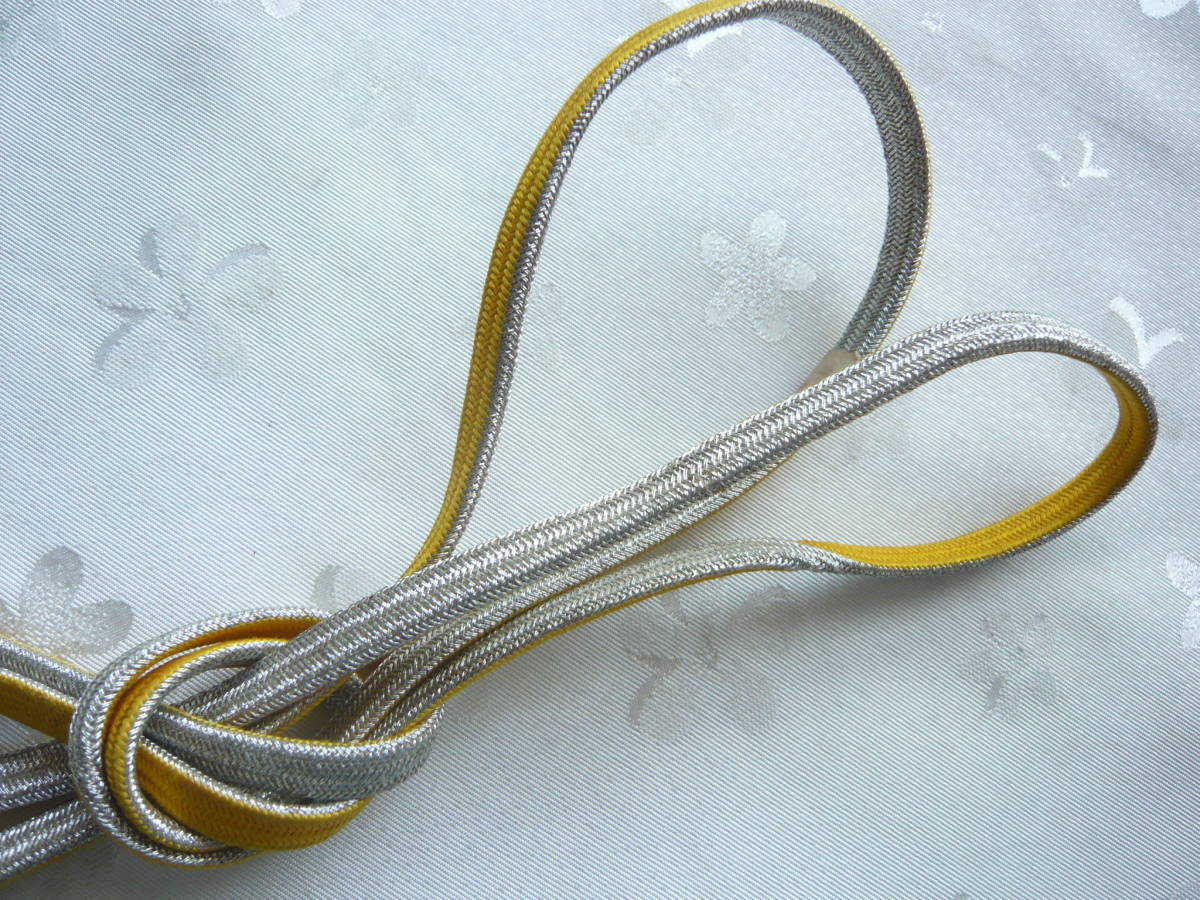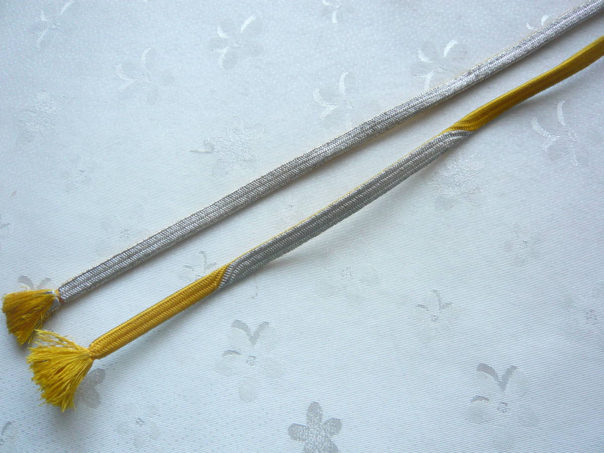 | ★ 商品名 *USED美品★帯締め★お洒落!銀色&黄色★平組・平打ち★和装小物★レトロ★着物 和服 浴衣★3933 |