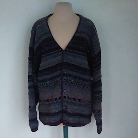 イタリア製、予備ボタン1つ付き、毛50%アクリル45%レーヨン5%、サイズ表記L、実寸身幅54センチゆき丈80センチ着丈66センチいずれも平おき寸法です。破れや穴無く状態特に問題ございません。非常に良い色使いのお洒落な品物です。画像自己紹介御覧になりご検討宜しくお願い致します。