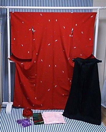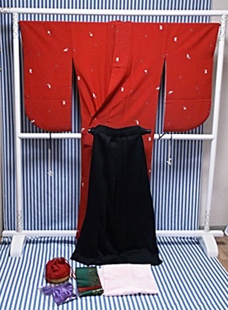 二尺袖 袴 袴下帯 襦袢 巾着 髪飾りのセット 中古 お安くどうぞ (5)
