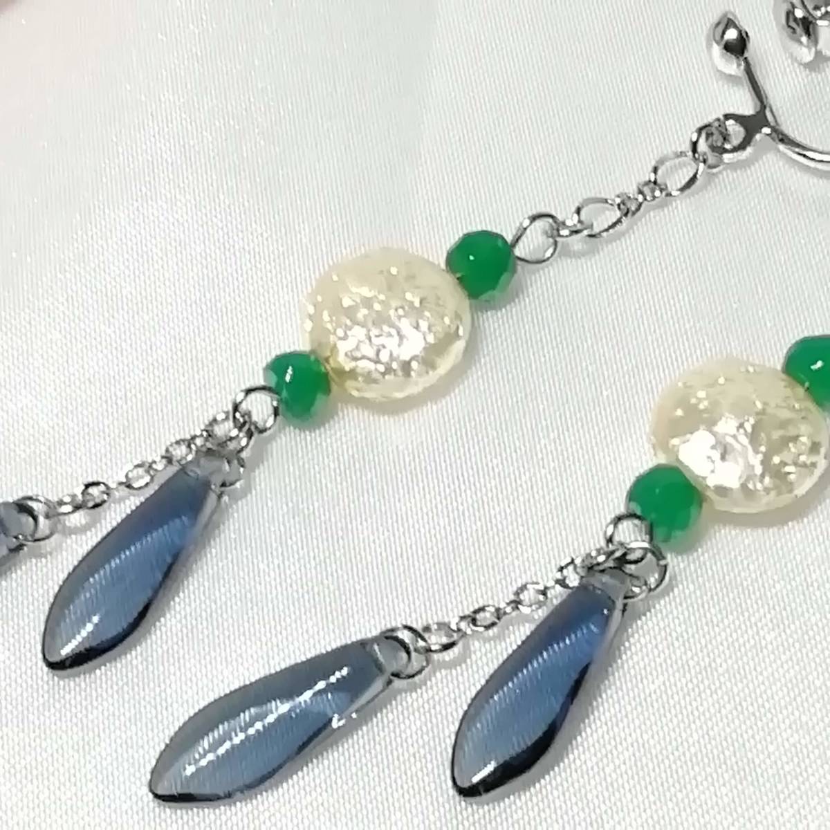 ★商品内容★ ★モンタナダガーと天然石グリーンオニキスのハンドメイドイヤリング/パール/上品/シルバー/緑/チェコ/ダガー/天然石/モンタナ/シック シルバーとブルーブラック、白と緑の組み合わせが 上品でシックな中にも、華やかな大人の印象のイヤリンです*・*・。*・☆・**.。**.**。・ 普段使いはもちろん、お出掛けや お洒落のワンポイントにも最適です・。**.☆・**・。**。・. 【素材】 チェコビーズダガーモンタナ(チェコ産)16mmx5mm チェコビーズパールクリーム10mx3mm 天然石グリーンオニキスボタンカット3mmx4mm フィガロチェーンシルバー 小粒チェーンシルバー カンより垂れ下がる長さは、約6.2㎝です。 Eー634 ★注意事項★ ***~ご購入前に必ずお読み下さい~*** *・*・*落札後について*・*・* *落札後4日以内にお手続き、ご連絡が無い場合は落札者都合で削除致します。 *発送日指定・ご入金の予定が1週間以上先をお考えの方は、入札の前に質問よりご連絡くださいませ。 予めご了承の上、ノークレーム・ノーリターンでお願い致します。 *・*・*商品について*・*・* *一点一点心を込めて作っておりますが、手作りなため多少の歪み等あるかもしれません。 手作りの味わいと、世界で一つだけの作品とお考えいただければ幸いです。 *デリケートな商品ですので、強く引っ張ったりすると破損する事もあります。 お取り扱いにはご注意ください。 *ご覧のPC、スマホによっては画像と実物の色味が多少異なる場合があります。 *基本イヤリング金具は跳ね上げネジ付き金具にて作成しております。 *ご希望によりピアスへの変更も承っております。 【フックピアス…無料/キャッチピアス…別途追加料金120円が必要です。】 *その他…樹脂ノンホールピアス(無料)・カン付き樹脂ノンホールピアス(別途追加料金20円が必要です。)にも変更をお受け致します。 ~ご注文の際にメッセージ欄よりお申し付け下さい~ 尚、金具変更のご希望が無い場合は、掲載された写真の金具にてお送り致します。 *金属アレルギーや化学物質アレルギーなどへの対応はしておりませんので、ご心配な方はご遠慮下さいますようお願い致します。 *永くご愛用頂くために、ご使用後は柔らかい布等で軽く拭いてください。 *・*・*プレゼント用梱包のご要望もお受けいたします*・*・* *その際は、梱包費用が別途で必要となりますのでご注意ください。 また、ご希望の梱包タイプによって、発送方法が変わりますので、送料が別途必要となります。 プレゼント用梱包タイプ 【袋→100円】 発送方法【クリックポスト(送料無料)】 プレゼント用梱包タイプ 【箱→200円】 発送方法【レターパックプラス(別途520円)】 袋タイプは【合計100円の追加料金が必要です。】、箱タイプは【合計720円の追加料金が必要です。】となります。 ◆ご希望の場合は、必ず商品ページをウォッチリストに登録した上で落札前に質問にてお問合せ下さい。◆ ◆ご希望を承り次第、一度出品を取り消し、プレゼント用梱包費用、送料などを追加した金額へ変更し、再出品致します。◆ *再出品後に再度検索して頂く手間が省けますため、プレゼント梱包をご希望の場合は必ずウォッチリストへのご登録をお願い致します。 金額変更後の再出品から3日以内に落札されなかった場合、誠に勝手ながら購入する意思がないとみなしまして、元の金額へ修正致します。 また、修正後、再度プレゼント用梱包のご希望のお問い合わせを頂きましても、お断りをさせていただきますのでご注意ください。 ご不明な点がございましたら、落札前に質問よりお願い致します。 ***ご質問について*** *ご購入前にお願い致します。 日中は仕事をしておりますので、ご返事が直ぐに出来ない場合がございます。 出来る限り早い対応を心がけますが、ご了承ください。 また、発送までには、お振込み確認後、翌日の発送を心がけておりますが、仕事の都合により2~3日程かかる場合がございます。(その際にはナビにてご連絡いたします) お急ぎの場合は、極力対応いたしますが、場合によっては対応致しかねる事もあります。ご了承下さいませ。 | |||