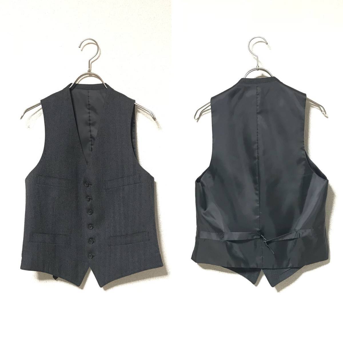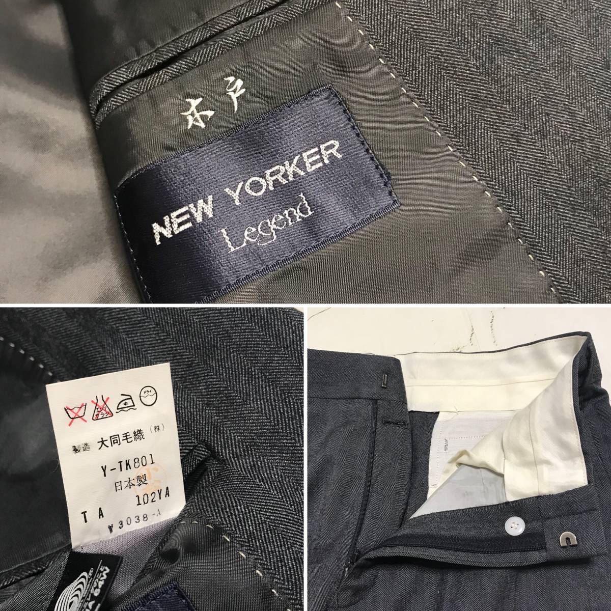 美品★NEW YORKER/ニューヨーカー★メンズ 3ピース スーツ 2B ベスト 3点セット グレー ヘリンボーン size 88YA セットアップ