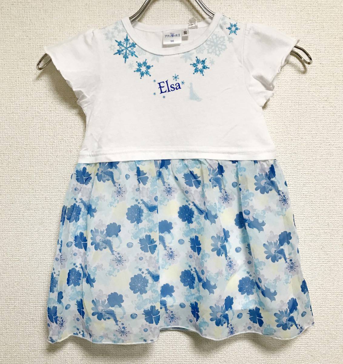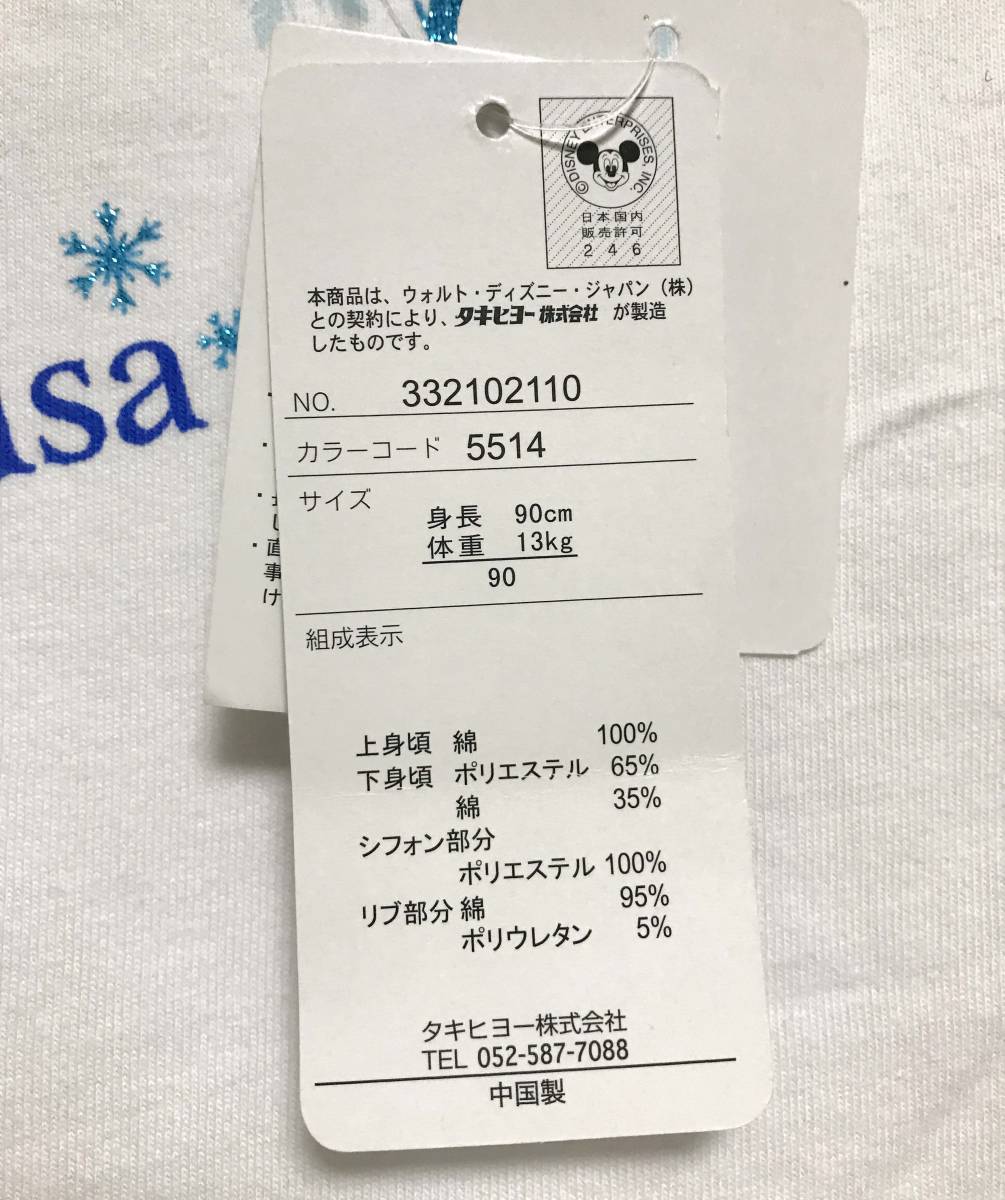こちらの製品につきましては新品・タグ付きではありますが、店内にてオープン展示販売商品、海外製のため、多少の糸くず、ほつれ、縫製にずれがある、洗えば簡単に取れる汚れ等がある場合がございます。 検品はしておりますが、それらに関しましては事前にご理解をいただきましたうえでご入札頂きますようお願い致します。 ディズニープリンセス エルサのワンピースです。 家でお洗濯可能ですので普段着にもお使いいただけます。 シフォンスカートの下はインナー付きです。 上身頃 綿 100% 下身頃 ポリエステル 65% 綿35% シフォン部分 100% リブ部分 綿95% ポリウレタン5% |