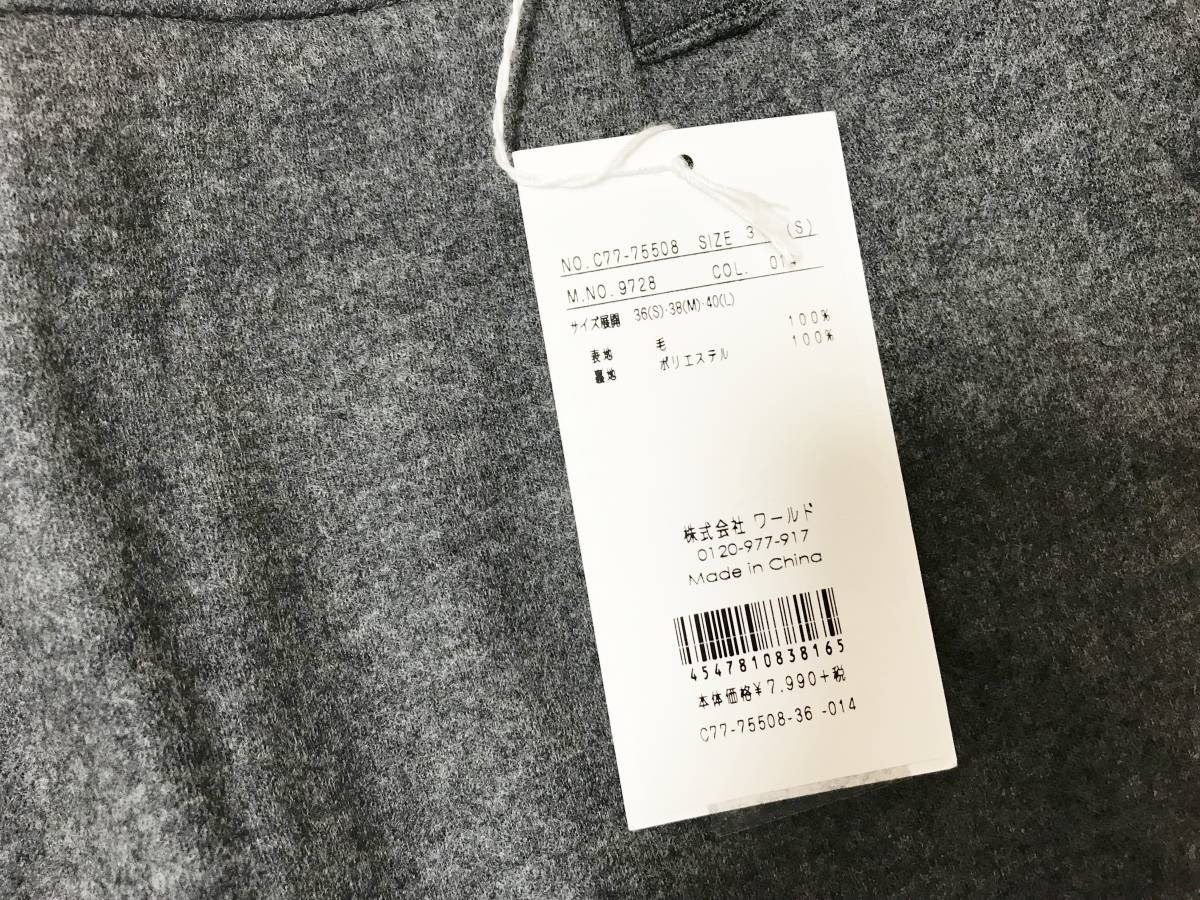 WORLD BASICS ㈱ワールド 定価:7,990+税 サイズ表記:36(S) お色め:014 グレー 系 表地:毛100% ウエスト:ポリエステル100% 裏地:ポリエステル100% ●平置き採寸●(参考) ウエスト/約34.5㎝ 着丈/約46cm 未使用品ですが、自宅保管にご理解頂ける方のご入札ご検討願います。 ◆細かい点(ご利用に問題のない程度の小さな傷・匂い・汚れ・シワ等) は素人検品の為記載漏れがあることをご理解願います◆ ◆洋服のようなものは保管・発送時のしわをご理解ください。 ◎照明・パソコンの色彩環境等の違いから 掲載の画像と実物の色味が異なる場合がございます。 ★発送について★ ◆全国送料無料・・・当方指定の発送方法◆ 追跡のある方法でお送り致します。 ◆土日祝はお休みを頂いております。基本的に発送は出来ません。◆ ◆平日11時頃までのご入金確認で当日発送を心がけておりますが 対応出来ないときもありますので ご入金確認後の翌日~3日程度の発送でご理解ください◆ ★長期のお休みは自己紹介にて記載しております。 お手数ですがお急ぎの場合は一読お願いします。 | |||