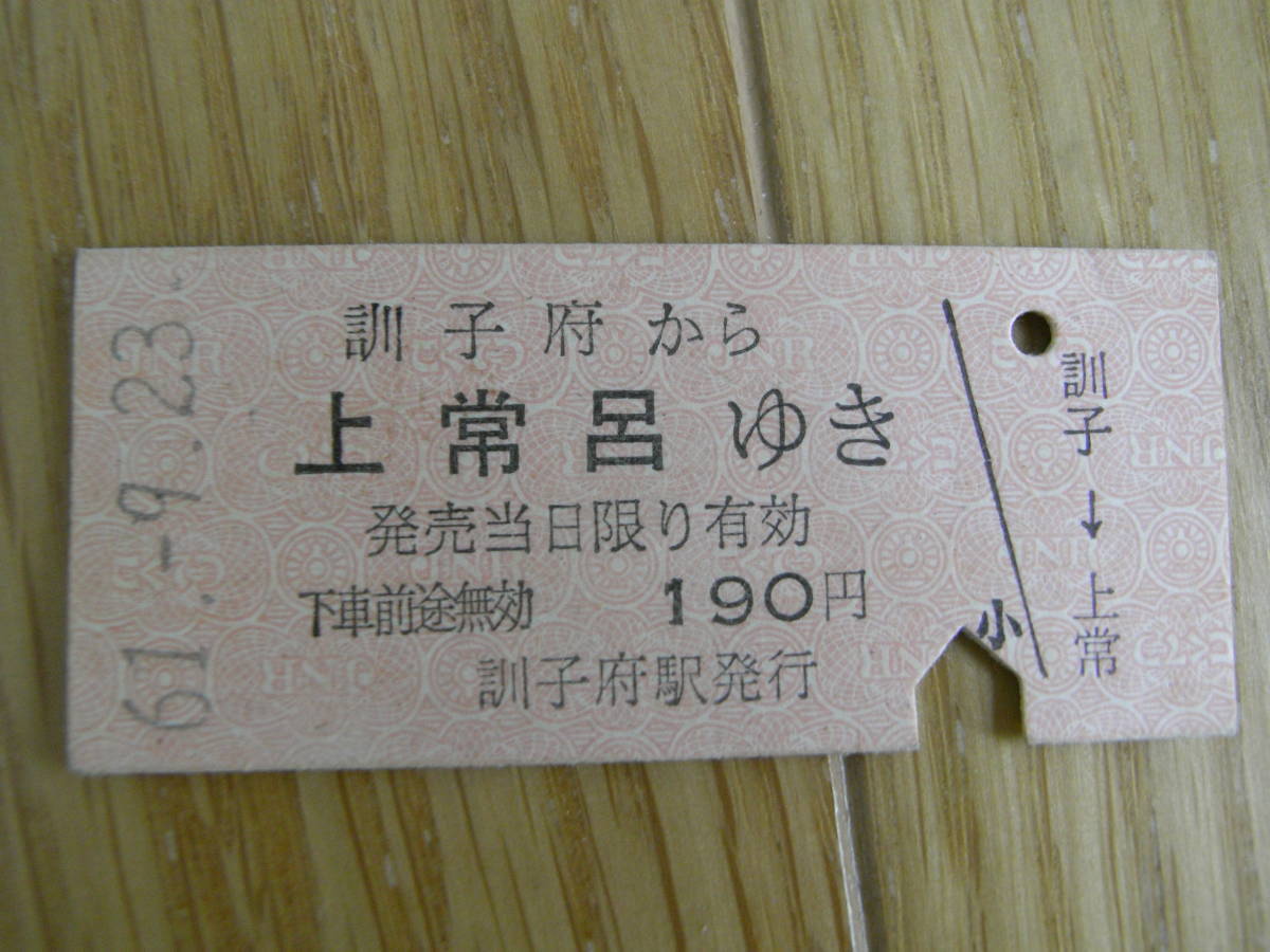 池北線 訓子府から上常呂ゆき 190円 昭和61年9月23日 訓子府駅発行