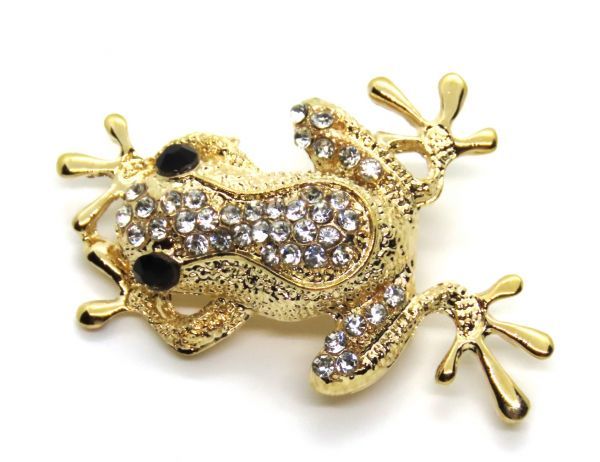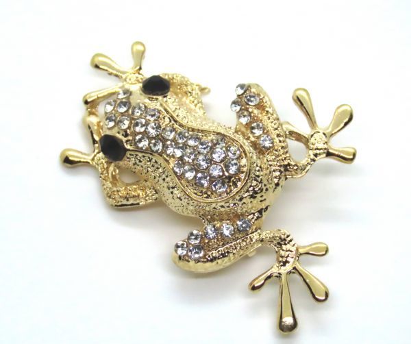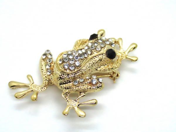 可愛いカエルのブローチです!日本国内より安心発送! ラインストーンがキラキラ可愛いです! 素材 合金 サイズ 約5cm×約3cm