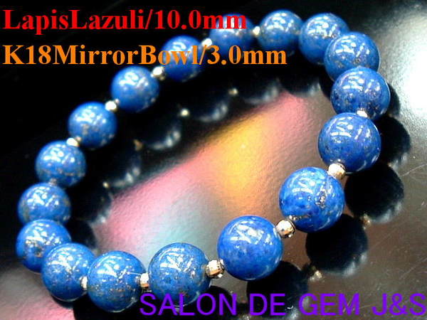 【18金ミラーボール&極上天然本ラピスラズリブレスレット】