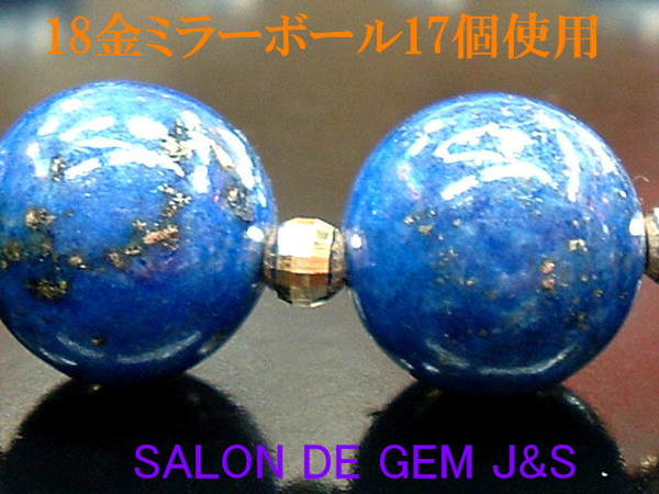 ●極上の本ラピスラズリ(瑠璃)&K18ミラーボールを17個使用の高級ブレス