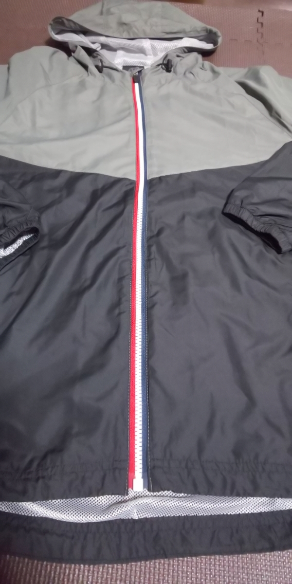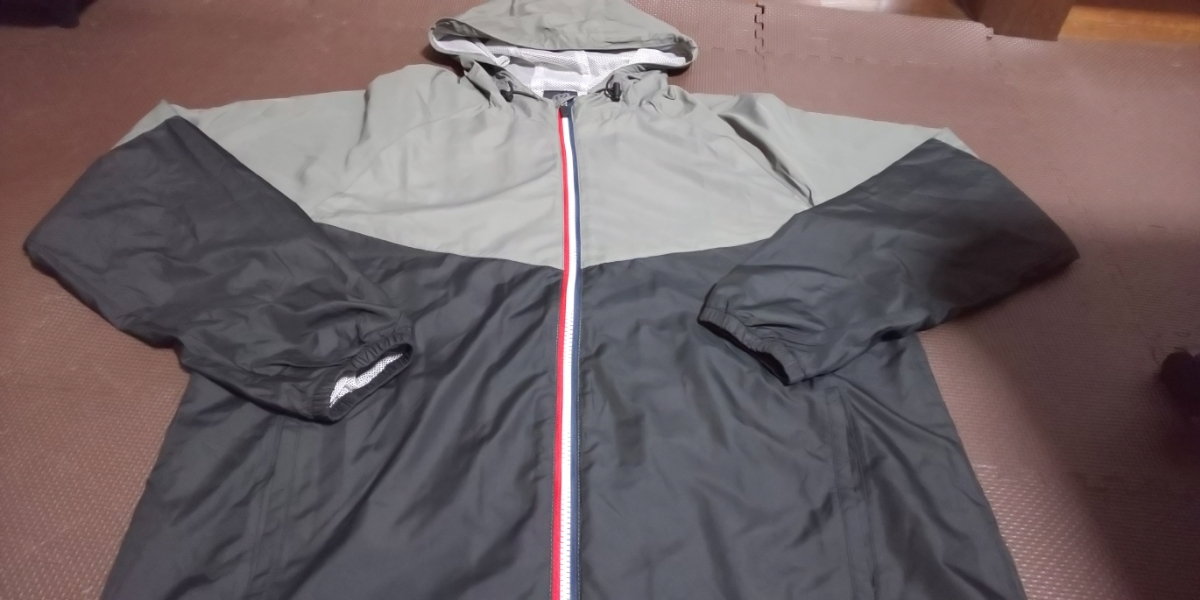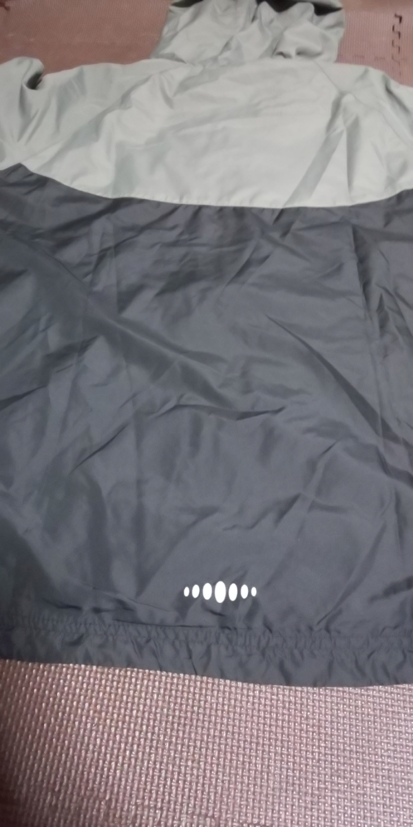 サイズ L 身幅56cm.着丈71cm.フード、裾ゴム入り、裏メッシュ、後ろ反射板有り